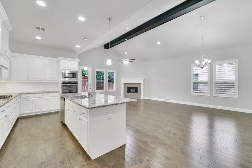 Beautiful Home with 3,001 Sq. Ft. and Exceptional Features! Step into this stunning home with beautiful wood floors throughout the entire first floor. Offering 3,001 square feet of elegant living space, this property includes 3 bedrooms, 3 full baths, a study, game room, and media room. The gourmet kitchen is a chef s dream featuring a gas cooktop, large island, granite countertops, a vent hood to the outside, and a spacious walk-in pantry. Enjoy gatherings in the open living room with a cozy fireplace and an abundance of natural light perfect for entertaining family and friends. A secondary bedroom downstairs is ideal for a young child or guest suite. Retreat to the luxurious master suite, complete with a walk-in shower, dual sinks, and custom-designed drawers. Upstairs, you ll find a game room and media room perfect spaces for family fun and movie nights. Relax outdoors on the covered patio overlooking a private backyard, great for BBQs and outdoor enjoyment. Located in a family-friendly community offering a pool, park, playgrounds, walking trails, and a scenic lake, this home provides both comfort and convenience just minutes from Highway 75.