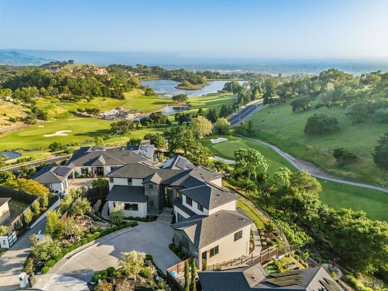 Welcome to your dream home at 3727 Lakebriar Place, Santa Rosa, CA, nestled along the picturesque green of the Fountain Grove Club's 8th fairway and situated on a private cul-de-sac. This custom luxury residence embodies the elegance of a modern wine country lifestyle, offering nearly 5,000 sq ft of thoughtfully designed living space. Upon entering, be captivated by a breathtaking two-story, floor-to-ceiling tile fireplace, accentuated by a wall of windows that frame stunning lake and golf course views. The chef's kitchen is a culinary delight, featuring a spacious island, walk-in pantry, and professional series Dacor range, perfect for both intimate meals and grand gatherings. With 5 bedrooms and 6 bathrooms, this home provides flexible living arrangements, featuring primary quarters upstairs and guest accommodations on the main level. Enjoy the outdoors with private spaces and a quaint hobby vineyard. Additional amenities include air conditioning, a four car garage, downstairs family room for kids, wine wall and closet, and primary suite with balcony, creating an unparalleled luxury living experience.