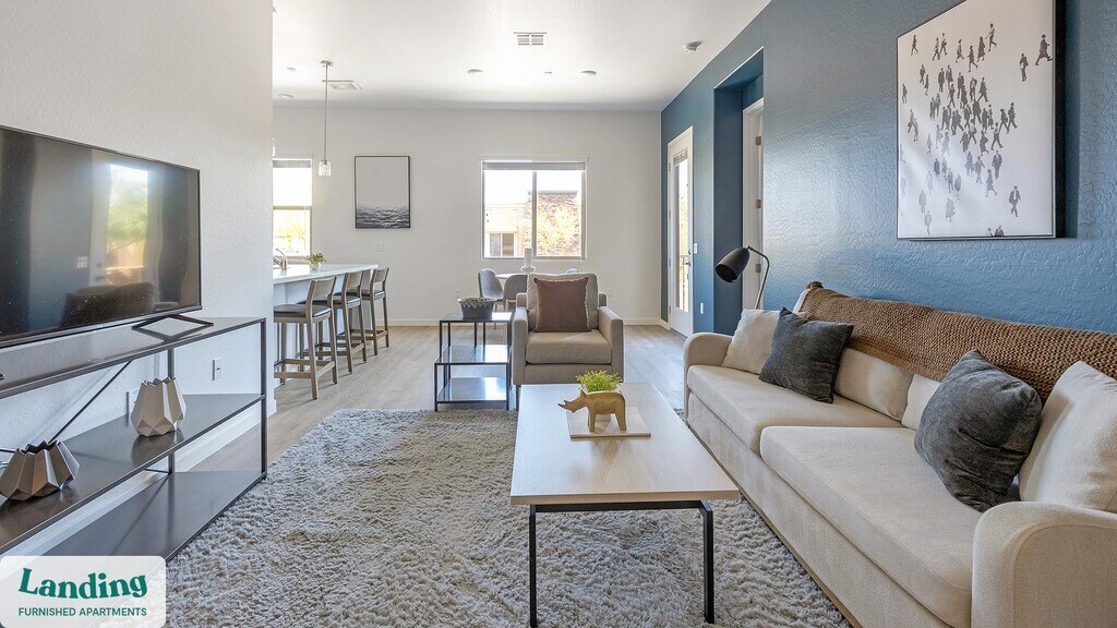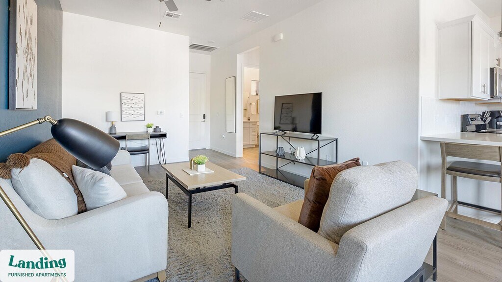 Landing offers flexible lease terms from weeks to months. Please always visit our website or contact us for the latest pricing & availability. Stay longer, save more: 6-Month Minimum base rent: starts at $2600/mo 12-Month Minimum base rent: starts at $2256/mo Landing offers flexible leases across a network of over 35,000 fully-furnished apartments throughout 375+ cities so you can rent on your terms, practically anywhere, and avoid the hassle of paying deposits or application fees. Visit to learn about all the benefits of a Landing membership, see our competitive up-to-date pricing, explore available apartments, take virtual tours, and make reservations online without jumping through traditional rental hoops. Landing's apartments at Linda Vista are designed for comfortable, easy living, with the ability to stay as long as you like. Experience living with Landing Every apartment is outfitted with all the modern essentials including: custom-designed furnishings, a fully-equipped kitchen with deluxe stainless steel appliances, a gourmet coffee maker, premium linens, Smart TVs, and incredibly fast, reliable internet for working from home. When you live with Landing, you'll enjoy a hassle-free experience with the added benefit of 24/7 access to our dedicated member experience team. Some of the nitty-gritty: a background check and proof of income are required; we're completely smoke-free; bundled utility packages and pricing vary based on length of stay; pet-friendly options available; listed price reflects a 12-month minimum stay.