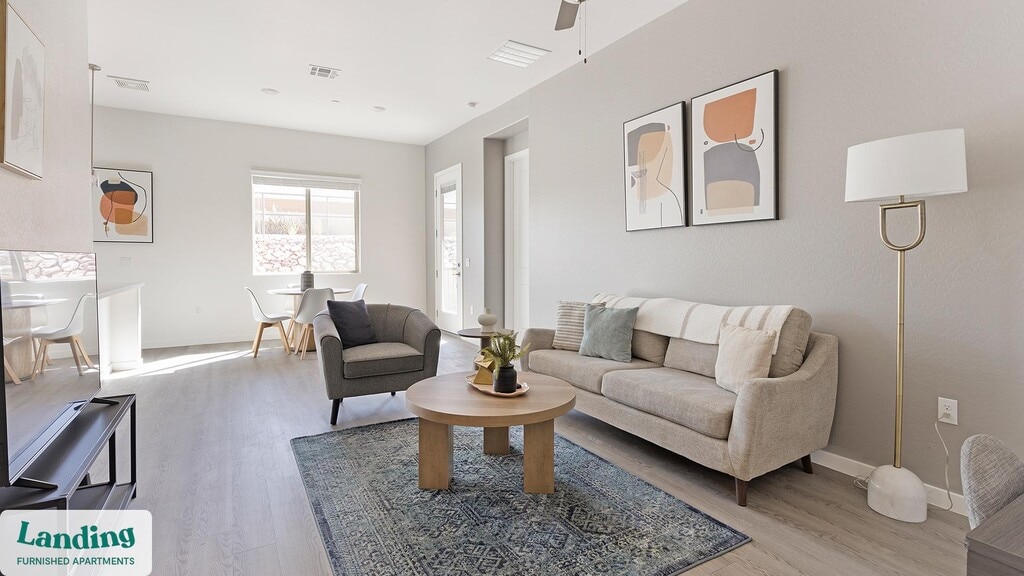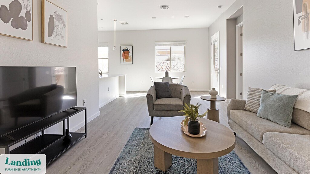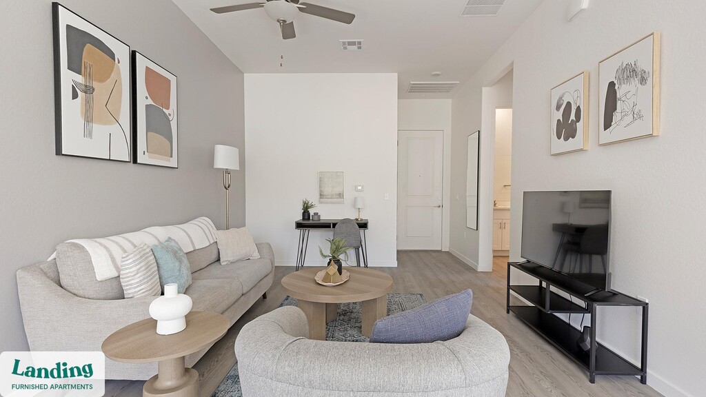 Landing offers flexible lease terms from weeks to months. Please always visit our website or contact us for the latest pricing & availability. Stay longer, save more: 6-Month Minimum base rent: starts at $2600/mo 12-Month Minimum base rent: starts at $2256/mo Landing offers flexible leases across a network of over 35,000 fully-furnished apartments throughout 375+ cities so you can rent on your terms, practically anywhere, and avoid the hassle of paying deposits or application fees. Visit to learn about all the benefits of a Landing membership, see our competitive up-to-date pricing, explore available apartments, take virtual tours, and make reservations online without jumping through traditional rental hoops. Landing's apartments at Linda Vista are designed for comfortable, easy living, with the ability to stay as long as you like. Experience living with Landing Every apartment is outfitted with all the modern essentials including: custom-designed furnishings, a fully-equipped kitchen with deluxe stainless steel appliances, a gourmet coffee maker, premium linens, Smart TVs, and incredibly fast, reliable internet for working from home. When you live with Landing, you'll enjoy a hassle-free experience with the added benefit of 24/7 access to our dedicated member experience team. Some of the nitty-gritty: a background check and proof of income are required; we're completely smoke-free; bundled utility packages and pricing vary based on length of stay; pet-friendly options available; listed price reflects a 12-month minimum stay.
