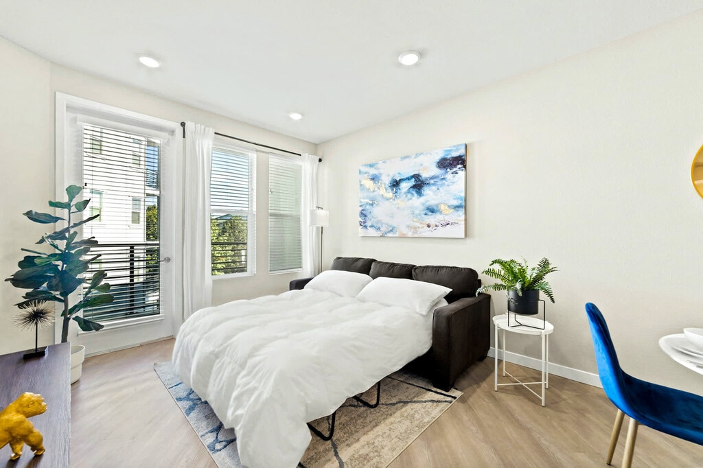 Indulge in modern luxury at this sleek 1-bedroom, 1-bathroom apartment. Enjoy a fully equipped kitchen, in-unit washer and dryer, high-speed Wi-Fi, and Smart TV. Indulge in the community’s premium amenities, including a pet spa, sky lounge, year-round heated pool, a 24-hour fitness gym, and a barbecue grill overlooking the marina. Perfectly located near scenic trails, restaurants, and attractions, this apartment offers a peaceful retreat with everything you need for both business and leisure. This space includes everything needed for a quality and memorable experience for up to four guests. The apartment is furnished with amenities to elevate your experience, including complimentary coffee and tea starter packs, entertainment channels like Netflix, fast and free Wi-Fi, and a fully stocked kitchen. Sleeping accommodations include a king-size bed in the bedroom and a queen-sized sleeper sofa in the living area. The living area is perfect for relaxing with a 65" Smart HDTV and access to a balcony. The kitchen is equipped with all basic cooking equipment and appliances, and the dining area is furnished with a sleek table and four chairs. We offer a discount on the pet fee for guests who bring more than one pet. Our standard fee is $75 per pet for the duration of your stay. However, we cannot accommodate Wolf hybrids, Pit Bulls, Rottweilers, German Shepherds, and Doberman Pinschers. Free parking is available for all guests. Reno, Nevada, and the surrounding area offer a wide variety of indoor and outdoor recreational activities. With excellent weather, residents and visitors can enjoy the nearby spectacular Lake Tahoe and the largest concentration of ski facilities in the world, all within a fifty-mile radius. Outdoor activities such as biking, camping, hunting, fishing, and mountain climbing are popular among residents and visitors. Located minutes from the Row, which includes Circus Circus, El Dorado, and the Silver Legacy Casinos, you can try your luck at the slots or catch a great show. The Riverwalk, featuring the Truckee River and world-class restaurants, is a great place to enjoy a meal and visit a microbrewery. Quiet hours are between 22:00 and 8:00. A laptop computer is not included in the home office set-up. [SI]