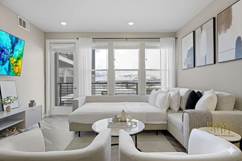 The advertised rate of $5,757/month is the lowest available price, based on a 30 day(s) stay with a move-in date of May 19, 2026. Rates vary depending on the duration of stay, season, and other parameters. For exact pricing and additional pricing components, please visit our website and enter your desired move-in and move-out dates. The rate is applicable when billed upfront; it can be higher if billed in multiple payments. Feel at home in this stylish 2-bedroom, 2-bathroom apartment featuring a private balcony with stunning marina views. This apartment features a fully equipped kitchen, in-unit washer and dryer, high-speed Wi-Fi, and a Smart TV. The kitchen comes with basic cooking equipment, dishware, silverware, a stainless steel refrigerator, microwave, stove, oven, toaster, rice cooker, milk frother and Keurig coffee machine. The dining area is furnished with a sleek table and 6 comfortable chairs. Full bathroom 1 features a two-sink bathroom and a walk-in shower equipped with a shower chair, plush white bath towels, a 5x magnifying makeup mirror, a plush makeup towel, and a travel-size hair dryer. The shower is equipped with soap dispensers filled with sulfate-free, 100% vegan shampoo, conditioner, and body wash. Full bathroom 2 comes with a shower tub, plush white bath towels, a 5x magnifying makeup mirror, a plush makeup towel, and a travel-size hair dryer. The shower is equipped with soap dispensers filled with sulfate-free, 100% vegan shampoo, conditioner, and body wash. The comfortable living area has a 58" Smart HDTV with Netflix. Guests have access to the 24-hour gym. Enjoy the community’s premium amenities, including a pet spa, sky lounge, year-round heated pool, and a barbecue grill overlooking the marina. Free parking is available. Located near scenic trails, restaurants, and attractions, this apartment is minutes from the Row, which includes Circus Circus, El Dorado, and the Silver Legacy Casinos. The National Bowling Stadium is also located downtown, just blocks from the Row. The Riverwalk, featuring the Truckee River and world-class restaurants, is a great place to people-watch and visit a microbrewery. Reno and the surrounding area offer a variety of local attractions for visitors to enjoy, such as Carson City, Lake Tahoe, Meadowood Mall, Mount Rose Ski Resort, the Reno Sparks Convention Center, the University of Nevada - Reno, and Historic Virginia City. The Regional Transportation Commission of Washoe County (RTC) operates a bus system that serves Reno, Sparks, and the surrounding area. There's a bus stop near the location that connects to the main bus lines in the area. For a more convenient option, you can request an Uber. Quiet hours are between 10:00 PM and 8:00 AM. The pet fee is $75 per stay for up to two pets. Certain dog breeds are not allowed, including Wolf hybrids, Pit Bulls, Rottweilers, German Shepherds, and Doberman Pinschers. [SI]