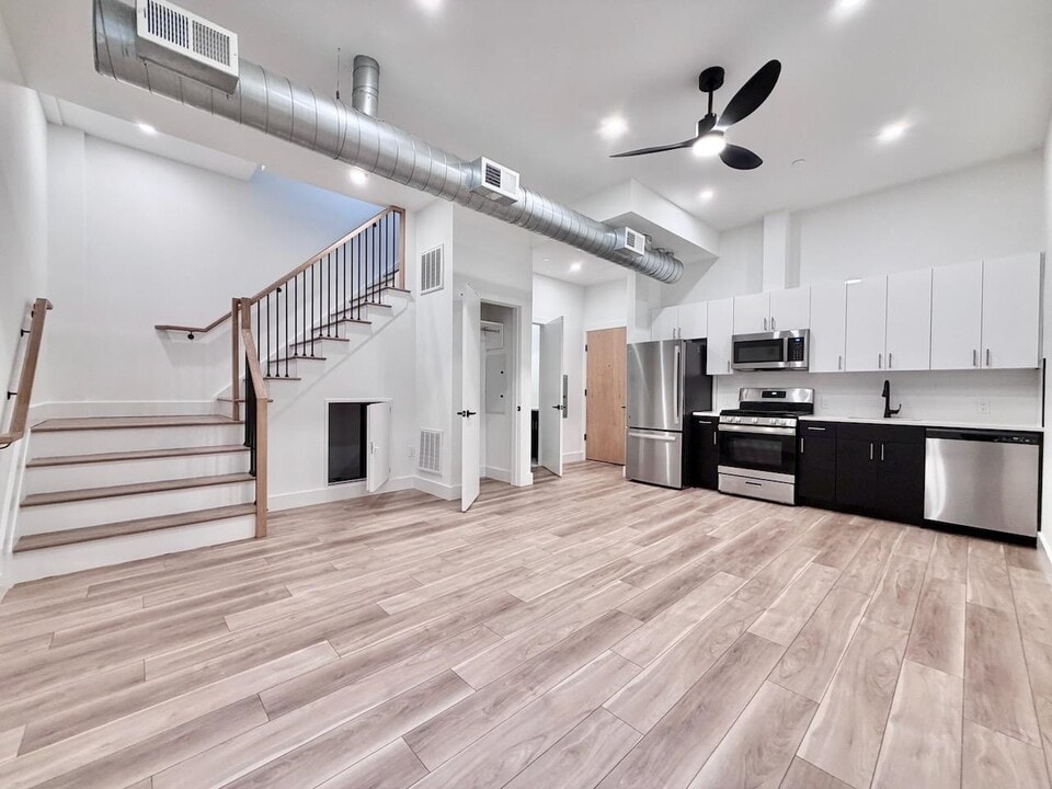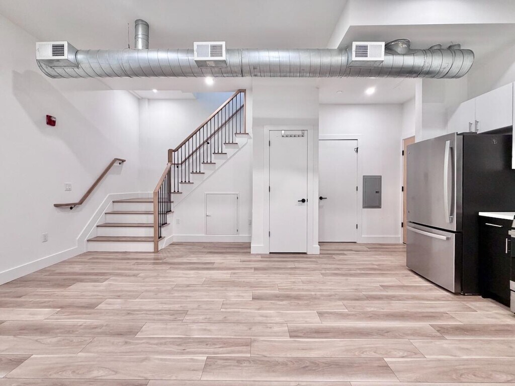 Welcome to 375 Monmouth, one of Downtown Jersey City's newest luxury apartment building. 204 is a spacious duplex apartment with a large 16 X 11 bedroom, a private balcony, a full bathroom upstairs and a half bath downstairs. In-unit washer/dryer, central air, and high ceilings. Designer finishes include sleek black cabinetry with bright quartz countertops, black Kohler plumbing fixtures, Yale Wifi Smart Lock for keyless entry, high end appliances including dishwasher, built-in microwave with range hood that vents outside the building. Gym on-site with treadmill, Peloton bike, and free weights. This elevator building is located just a few blocks from the Grove St PATH station as well as the Newark Ave pedestrian plaza and all that Historic Downtown Jersey City has to offer. Available now!