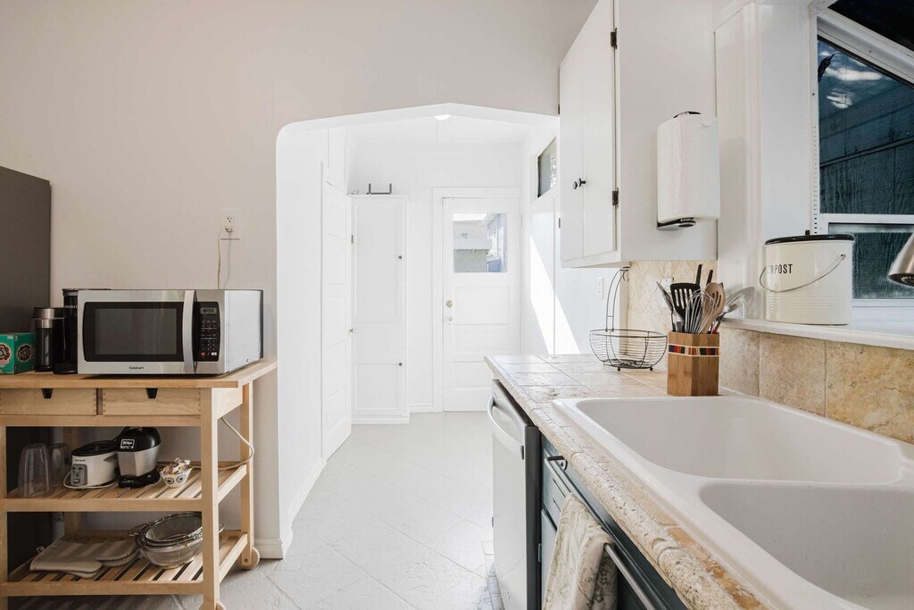 Discover your serene city escape in this sun-drenched 1-bedroom apartment in a quiet East Oakland neighborhood. Perfect for up to two guests, feel at home in this chic apartment that blends vintage charm with modern updates. The living room features a plush sectional sofa with a smart TV, bathed in natural light from oversized windows. A formal dining room with a piano and a fireplace provides a wonderful space to dine, work, or play. The private bedroom features a comfortable queen bed for a restful night's sleep. The freshly updated bathroom includes a shower-tub combination and hotel-quality essentials. For those who love to cook, the fully stocked kitchen includes a gas range, a full-size fridge, and stainless steel appliances. Enjoy the private, fully fenced backyard with a shaded bistro table and the convenience of a dedicated laundry unit with a washer and dryer. Located on a quiet, residential street near Mills College and Maxwell Park, this apartment offers a calm, walkable home base just minutes from everything you need. The vibe is local, low-key, and leafy, with neighborly charm, tree-lined sidewalks, and views of the East Bay Hills. You’re a short drive from Highland Hospital, Alta Bates Summit, and Kaiser Permanente, making this a top choice for medical professionals. Quick access to 580, 880, and MacArthur BART Station connects you easily to downtown Oakland, Berkeley, and San Francisco. Locals love Temescal Brewing, Korean eateries along Telegraph Avenue, and the buzz of Piedmont Avenue’s boutiques, bookstores, and brunch spots. Mosswood Park is a great green space nearby for a casual stroll, and the Saturday farmers market at the Coliseum makes stocking up feel like a treat. The Laurel District’s markets, cafes, and essentials are also just minutes away. Street parking is free and typically easy to find right outside your door. Major freeways (580, 880) are just minutes away for fast access to all parts of the East Bay and San Francisco. Public transit is nearby, and Fruitvale BART Station is a short drive or rideshare away, with connections to Oakland, Berkeley, and San Francisco. Outdoor quiet hours are from 10 pm until 8 am, seven days a week. This apartment is Wi-Fi ready and thoughtfully laid out for remote work or study. [SI]