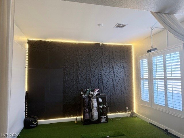 Fully furnished or NON furnished, its up to you! 3-bedroom, 2-bath home. Features formal living room and family room with fireplace, two bedrooms with king beds, and a third bedroom set up as a private office with standing desk and lounge space ideal for remote work. Enjoy a golf simulator that doubles as a media room (in dining room), plus a private backyard with fire pit and putting green. The garage includes a full gym setup. Additional highlights include high-speed Wi-Fi, smart TVs, and EV charging.