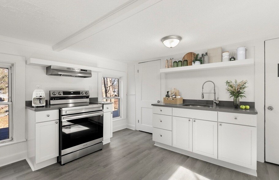 Large spacious sun lit 2nd floor unit. Bonus room perfect for a 2nd bedroom or home office. Fully renovated kitchen and bathroom. Updated appliances, countertops, sinks and tiled shower. Hardwood floors throughout. Lots of parking and a perfect yard for gatherings. Brand new laundry in basement. Move in date flexible. Easy access to 95 and Route 1. Video tour on file.