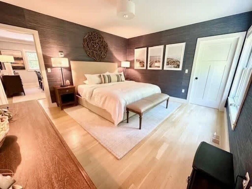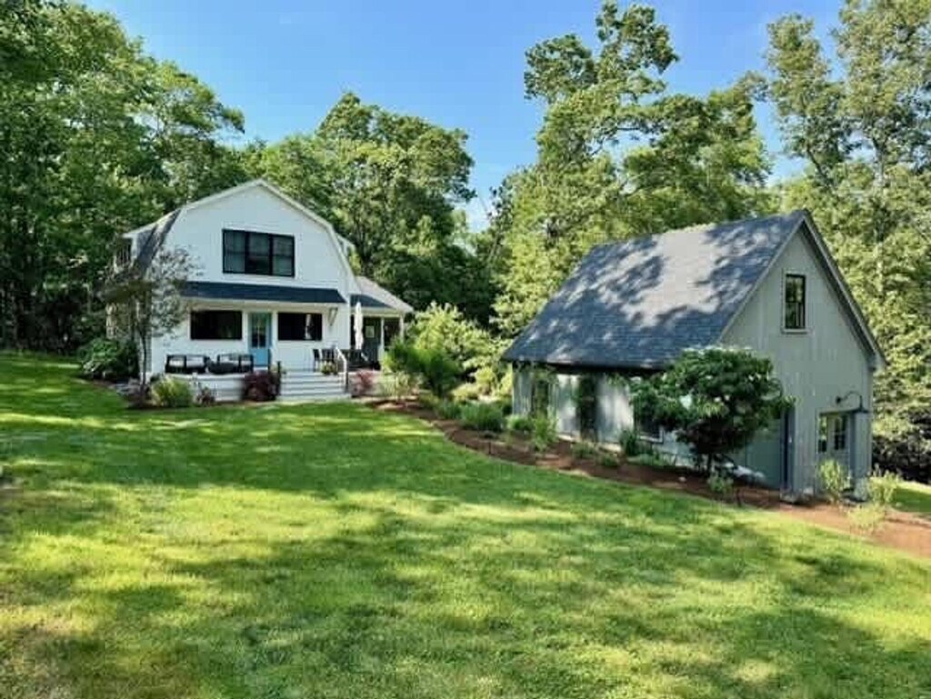 Welcome to this modern country house nestled in the woods on the tranquil Old Stone Church Rd. This spacious 3-bedroom, 3-bathroom retreat spans 2,300 sqft and is set on a large 2+ acre lot, surrounded by tall trees for privacy. With classic colonial charm and modern luxury, this home is perfect for families, business travelers, or weekend escapes. Enjoy family dinners in the gourmet kitchen or peaceful strolls along the quiet, colonial road. Guest parking is available in front of the barn. Designed with a blend of classic colonial charm and modern luxury, this home offers a gourmet kitchen with stainless steel appliances and white quartz-style countertops. The sunlit family room features a Smart TV and a large L-shaped sofa, perfect for streaming and movie nights. The expansive private deck is surrounded by nature, providing a peaceful setting for relaxation. A pet is allowed with a maximum weight of 35lbs and a pet fee of $300 per stay. Pets are not allowed on the furniture, and guests must pick up after their pets. Any evidence of pet damage or feces will incur a penalty of up to $400. Unauthorized pets will result in immediate removal with no refund and a penalty of $400. Conveniently located near the RI/MA border, this home offers a peaceful rural feel with quick access to town amenities. You are also just 10-20 minutes away from attractions like Wilbor House, Sakonnet Lighthouse, and Gooseberry Island, making it an ideal spot for exploring the area. Check-in time is 4PM EST and checkout is 11AM EST. Unauthorized late checkouts will incur a penalty of $35 for every 30 minutes, rounded up. Smoking is strictly prohibited inside or outside the property, with a penalty of $500 for violations and immediate removal without refund. Parties are not allowed, with a maximum occupancy of 5 people. Any parties will result in immediate removal with no refund and a penalty of $500. Noise from neighbors' projects or renovations is possible during weekdays from 8 AM to 6 PM. In case of a lockout, a fee of $125 will be charged for re-entry assistance, or $200 if outside regular business hours. A resort fee covers up to $500 in damages during your stay. Guests are responsible for a $35 service fee plus packaging and shipping costs for any items left behind.