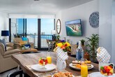 Feel at home in this luxe 2-bedroom condo on the 17th floor of a 19-story building, offering stunning beach views from every room. This newly renovated condo features smart TVs in each bedroom, a fully stocked kitchen, and in-unit laundry facilities. Enjoy the open living room with comfortable seating and a flat-screen smart TV. The kitchen is equipped with modern stainless steel appliances and a craft coffee bar. Beach amenities include beach towels, a beach wagon with cooler insert, beach chairs, and a beach umbrella. High-speed Wi-Fi and air conditioning are available throughout. A parking fee of $100 per car applies, and you need to sign in with management on Saturday to register your vehicle. Management leaves at 4 PM on Saturday, so if you arrive late, try the next day. Ideally situated on Marco Island, this condo offers direct beach access and is a short drive from local attractions, restaurants, and shops. Explore Tigertail Beach, the Marco Island Historical Museum, and Keewaydin Island. Maximum occupancy is 7 guests. There is no smoking and no parties allowed. Includes a dedicated workspace with a view. [SI]