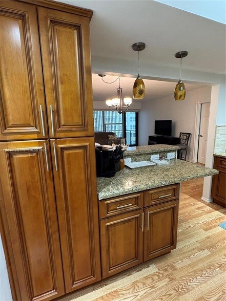 Spectacular Ocean View from this RENOVATED & furnished beachfront condo. The spacious open kitchen has granite counters, stainless steel appliances & breakfast counter. Enjoy meals in the open concept dining/living room area or the large balcony w/Ocean View. This is a clean renovated condo w/garage parking spot. Laundry Room conveniently located on same floor, next to unit. Building has beachfront pool, hot tub, tennis court, gym, modern social room, card room & more. Located directly across the street from a supermarket, restaurants, stores. & CVS. ABSOLUTELY No pets allowed and No smoking allowed in unit at any time during lease term. Concrete work scheduled to be completed by Nov 2025. Also available as 6 month seasonal rental.