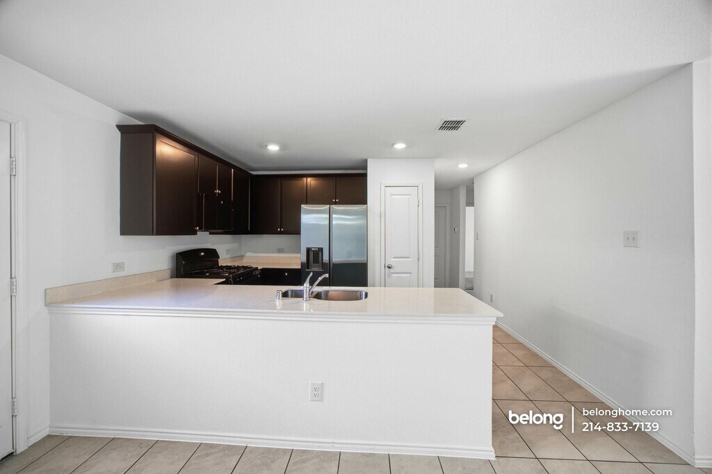 As good as a very new home, this 3-bedroom, 2-bath single home offers modern finishes, essential appliances, and a location that makes daily life easier. With a washer, dryer, and refrigerator included, it delivers immediate functionality along with lasting value. The kitchen stands out with dark cabinetry, sleek counters, stainless steel appliances, and a peninsula with an integrated sink that opens to the main living area. Recessed lighting and tile flooring keep the space bright and practical. A refrigerator is included, and in-home laundry with a washer and dryer adds everyday efficiency you will appreciate from day one. All three bedrooms are fully carpeted, creating comfortable, private spaces designed for rest and focus. Both bathrooms feature tile-surround tub and shower combinations, modern vanities with storage, and neutral finishes that feel fresh and current. Everything presents with the look and feel of a very new home, making this a smart and confident choice. Set in a beautiful Oak Point location near Lake Lewisville, you are close to major retail outlets and everyday conveniences. Kroger, Walmart, and dining along US-380 are minutes away, while nearby parks and lake access provide outdoor recreation. Quick connections to Little Elm and surrounding areas support an easy commute while maintaining a quieter neighborhood setting. *Our homes come as-is with all essentials in working order. Want upgrades? Request it through the Belong app, and our trusted pros will take care of the rest!
