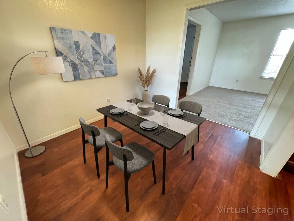 View 360° virtual tour: Welcome to this charming 2-bedroom, 1-bathroom duplex for rent in Killeen, TX. The flooring in this home is a mix of vinyl plank in the living room, kitchen/dining, and bathroom, with plush carpet in the bedrooms. The interior boasts a decorative backsplash in the kitchen and matching appliances, including dishwasher. With a large, fenced-in backyard and a covered patio, there is plenty of room for outdoor entertaining or simply relaxing in the fresh air. Appointments aren't required to tour. Contact us or stop by our Killeen office to learn more and see this home in person once it becomes available! We are located at 1020 W Jasper Drive, Killeen, TX 76542. Disclaimer: The furnishings or enhancements shown are AI-generated and intended for inspiration only. They may not reflect the actual scale, condition, or current features of the property.