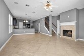 Spacious 2-story home featuring 5 bedrooms and 3.5 baths, complete with an attached 2-car garage. Upon entry, you re greeted by a dedicated office space, perfect for working from home. The open-concept kitchen flows into the living and dining areas, creating a warm and inviting atmosphere. The kitchen offers a pantry, breakfast bar, and plenty of counter space, while the living room features a cozy fireplace. The primary bedroom is conveniently located downstairs and includes an ensuite bath with double sinks, a separate shower, and a soaking tub. Upstairs, you ll find the remaining bedrooms, two full baths, and a laundry room for added convenience. The backyard is spacious, offering plenty of room for outdoor entertaining or relaxation.
