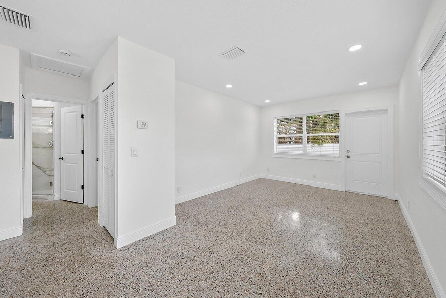 Immediately available, NO HOA, and easy to move in!!! Don't miss this completely renovated 1 bedroom 1 bathroom apartment with brand new stainless steel appliances, HVAC, and impact windows. The parking is well lit and right in front of your new home! Enjoy well lit and convenient parking directly in front of your new home. This unique property has two fenced in courtyards, one for entrance and one for backyard, shared by all tenants; one with a front entrance and the back entrance perfect for relaxing. This could also make a perfect work/live apartment! Pet friendly. You are also very close to St Marys Hospital, Good Samaritan Hospital, Palm Beach, Northwoods, supermarkets, Singer Island and Phil Foster Beach and more. Don't let it get away!