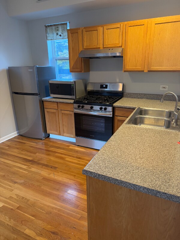 Property Id: 2135092 Sunny and spacious (approx. 900 SF) 1BD/1BA + den on a beautiful tree-lined street in highly desired Albany Park! You'll love the tall ceilings, abundant unobstructed windows that flood the space with natural light, and flexible floor plan. The versatile den can serve as a dining room, home office, or easily be enclosed for a true second bedroom. Charming vintage details include hardwood floors throughout, built-ins, and soaring ceilings, while modern updates bring everyday convenience-central heat/air, in-unit laundry, and ALL NEW stainless steel appliances in the spacious cook's kitchen. A private deck off the kitchen is perfect for relaxing outdoors. All this in an unbeatable location-steps to restaurants, shops, coffee, and just a short walk to the Brown Line, Lawrence bus, and easy access to I-94. Minimum 700 credit rating and monthly income 3x rent is required.