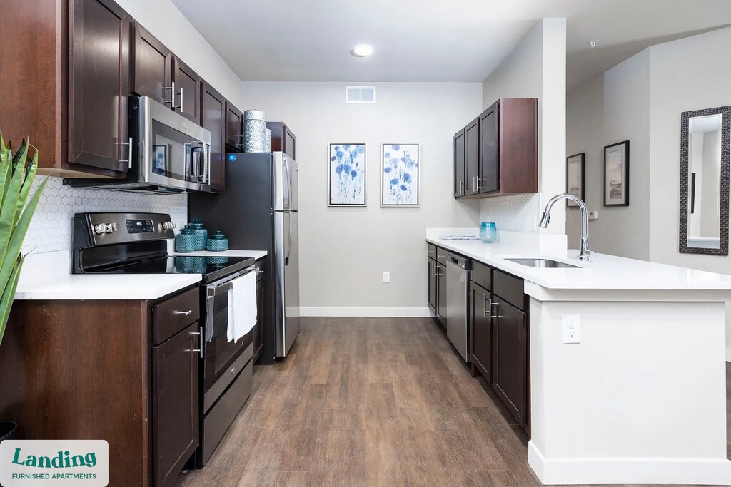 Landing offers flexible lease terms from weeks to months. Please always visit our website or contact us for the latest pricing & availability. Stay longer, save more: 6-Month Minimum base rent: starts at $1775/mo 12-Month Minimum base rent: starts at $1716/mo Landing offers flexible leases across a network of over 35,000 fully-furnished apartments throughout 375+ cities so you can rent on your terms, practically anywhere, and avoid the hassle of paying deposits or application fees. Visit to learn about all the benefits of a Landing membership, see our competitive up-to-date pricing, explore available apartments, take virtual tours, and make reservations online without jumping through traditional rental hoops. Landing's apartments at The Edge are designed for comfortable, easy living, with the ability to stay as long as you like. Experience living with Landing Every apartment is outfitted with all the modern essentials including: custom-designed furnishings, a fully-equipped kitchen with deluxe stainless steel appliances, a gourmet coffee maker, premium linens, Smart TVs, and incredibly fast, reliable internet for working from home. When you live with Landing, you'll enjoy a hassle-free experience with the added benefit of 24/7 access to our dedicated member experience team. Some of the nitty-gritty: a background check and proof of income are required; we're completely smoke-free; bundled utility packages and pricing vary based on length of stay; pet-friendly options available; listed price reflects a 12-month minimum stay.