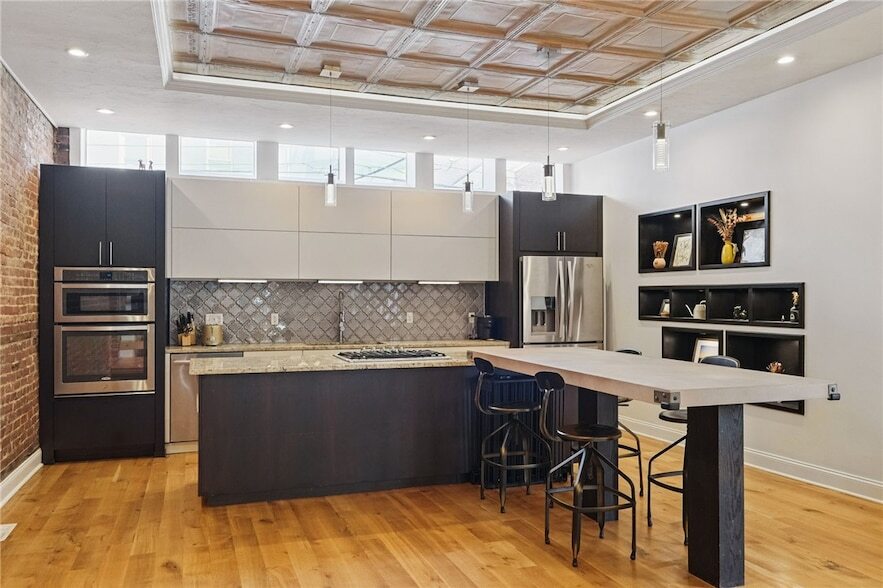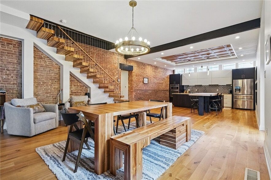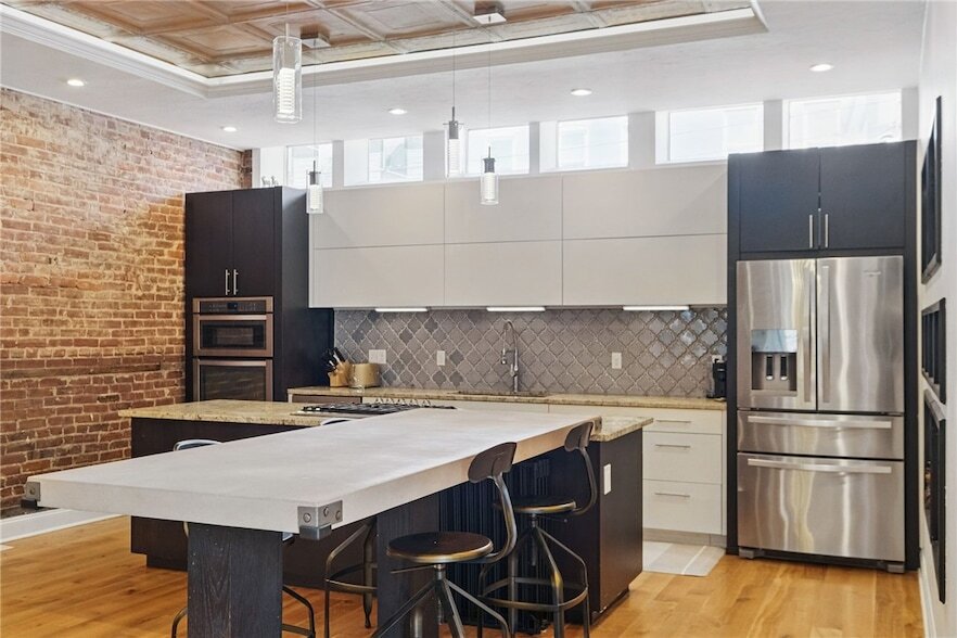 An urban oasis, situated between Butler St & Bloomfield, this 4 bedroom, 3 full bath home blends modern comfort with hip, chic finishes. From the cosmopolitan curb appeal to the jaw dropping 1st floor, everything about this home is just plain cool. Hardwood floors, exposed brick, a two-sided gas fireplace, & a suspended staircase all contribute to the overall vibe, but the kitchen is the heart of this home. Modern single touch lift system cabinets, granite countertops, a built in concrete table, & a backlit tin tray ceiling + sleek pendant lighting make this a kitchen you'll want to spend all day in. A full bath is connected to the laundry space which provides access to the private yard & rooftop deck + the 2 car garage. On the 2nd floor you'll find 3 bedrooms & a large hall bathroom. The owner suite spans the 3rd floor, its wood beams warm the space while its glass door bathroom & skylight bathe the space in sunlight. A sophisticated, contemporary house that will exceed expectations.