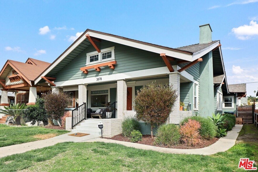 Nestled among a row of classic Craftsman homes, 3878 S Harvard offers a beautifully updated take on this timeless architectural style. Fully remodeled in 2019, the home preserves its original charm with hallmark details including a spacious front porch, substantial entry door, coffered ceilings, wainscoting, built-ins, and ornate wood-framed windows. Off the living room is the front bedroom or office, with great afternoon light from the West facing window. Two more bedrooms are steps from the dining room, one with an en suite bathroom. The hall bath has dual sinks and separates the bedrooms so they are even more private. The kitchen has plenty of storage, updated stainless steel appliances, and a window over the sink. An office/bonus room stands between the kitchen and the private back bedroom, also with an en-suite bathroom. The laundry is down the hall before you get to the attached garage. There is even a basement for additional storage and SOLAR for a padded electric bill! There is a gate off the back alley to get to the garage and the grassy backyard. Close to BMO Stadium, USC, the Expo Line, DTLA, and central to nearly the whole city, 3878 S Harvard is a tremendous find.