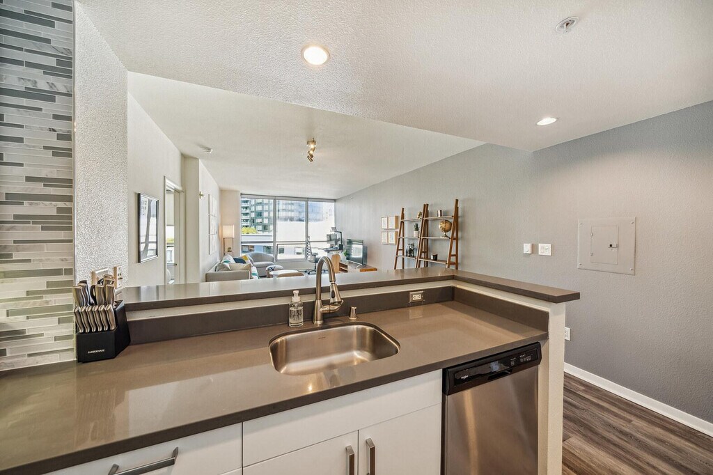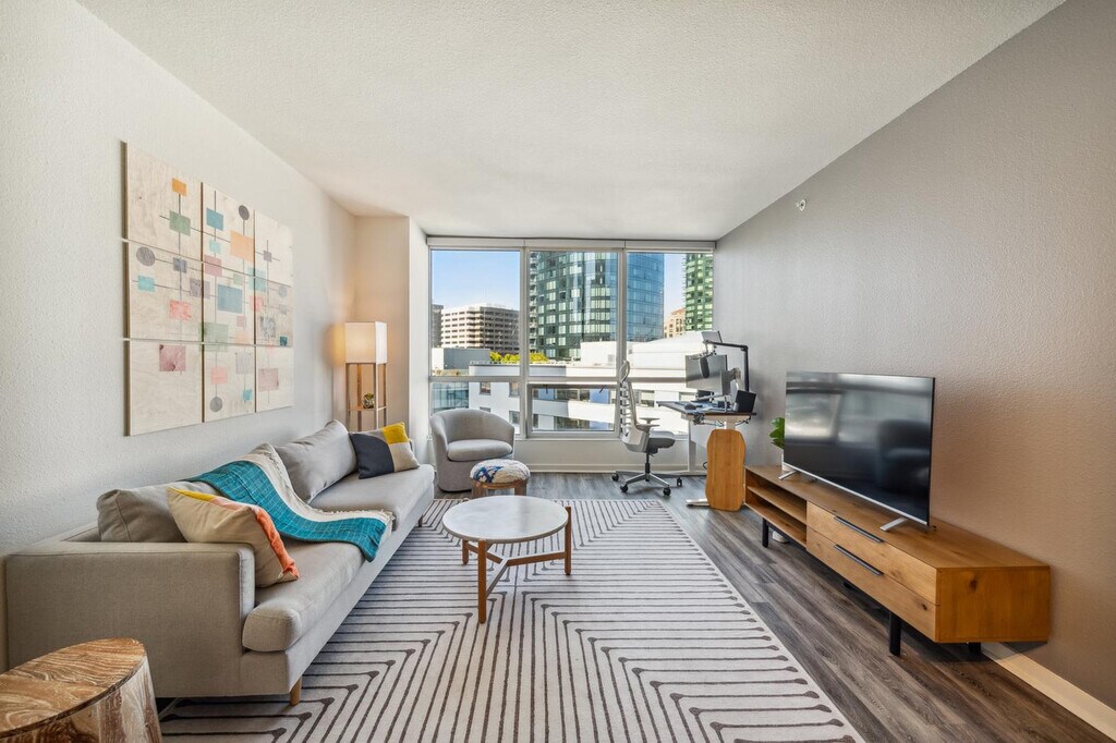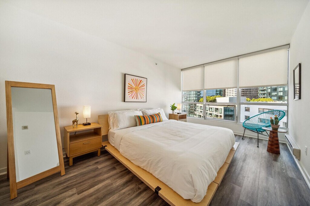Your home in San Francisco’s downtown core, this apartment on Beale Street provides the ultimate in high-end city living. Enjoy the vibrant lifestyle of Rincon Hill and the business district right outside your door, or take a short stroll to the waterfront and explore The Embarcadero alongside the bay. With restaurants, groceries, shopping, and museums all within walking distance, you’ll have everything you need right at your fingertips. This fully furnished, 1-bedroom apartment is custom designed for the remote worker looking for a comfortable and inspiring environment in which to be productive. The unit includes a fully equipped kitchen, full bathroom, king-size mattress, plenty of storage, smart TV, and all utilities. Most importantly, it features a full home office set-up with private high-speed internet that you won't find anywhere else. Secure garage parking starting at $400 per month based on availability and storage lockers available starting at $55 per month. There is no air conditioning in this unit. Internet speeds are not guaranteed and may fluctuate based on your computer model and the router location. Early check-in from 10am to 3pm will incur a fee of $75 and early check-in before 10am will incur a fee of 1 full night's rent. Late check-out from 11am to 3pm will incur a fee of $75 and late check-out after 3pm will incur a fee of 1 full night's rent. Late check-outs must be requested at least 48 hours in advance. Includes private high-speed internet, standing desk, ergonomic work chair, 34-inch ultra-wide monitor, microphone, webcam, computer speakers, LED streaming light, green screen, keyboard, mouse, laptop stand, and a TOTU 16-in-1 Triple Display USB-C 3.1 Docking Station. A laptop computer is not included.