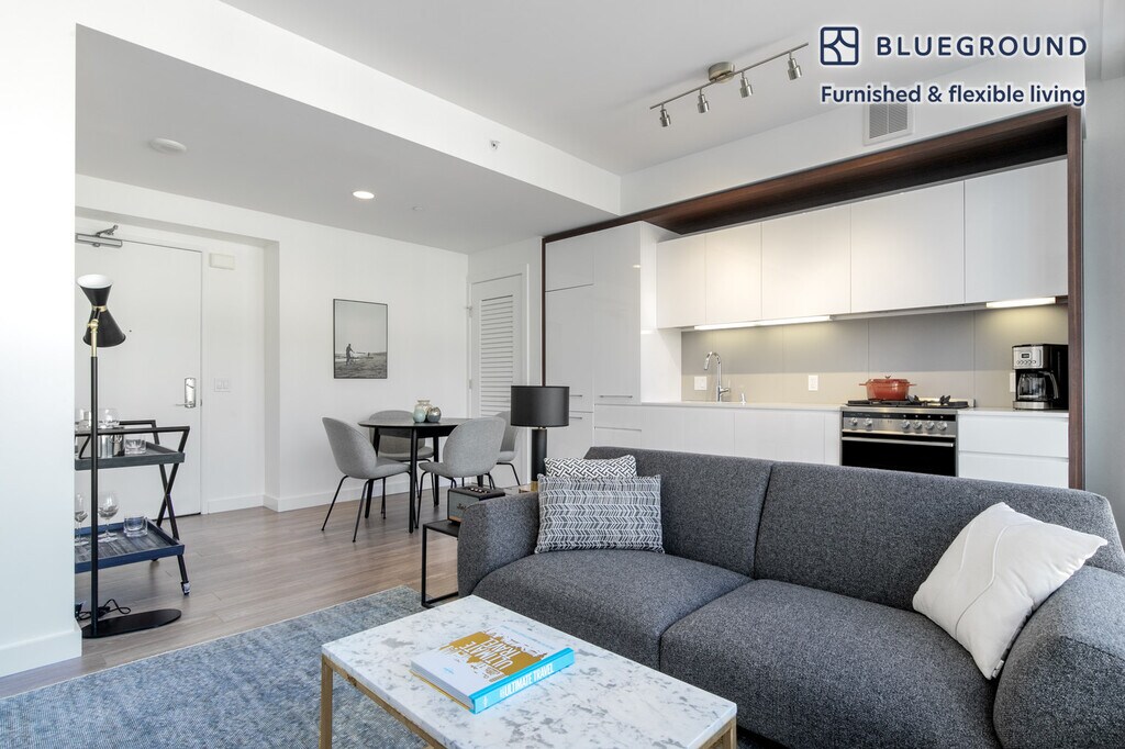 Feel at home wherever you choose to live with Blueground. You’ll love this stylish SoMa furnished one bedroom apartment with its modern decor, fully equipped kitchen, and beautiful living room. Ideally located, you’re close to all the best that San Francisco has to offer! (ID #SFO207) The advertised rate of $4,080/month is the lowest available price, based on a 1 month(s) and 3 day(s) stay with a move-in date of December 22, 2025. If you’re looking for a 1-year stay, the rate is $5,580/month. Rates vary depending on the duration of stay, season, and other parameters. For exact pricing and additional pricing components, please visit our website and enter your desired move-in and move-out dates. The rate is applicable when billed upfront; it can be higher if billed in multiple payments. Brokers are welcome to reach out. Were you looking for an unfurnished lease? Try Blueground instead and upgrade from unfurnished to furnished living: - Furnished at rates comparable to unfurnished - No setup or furniture costs - save thousands - Move-in ready - save time, just bring your suitcase Designed with you in mind Gorgeous furniture, fully equipped kitchen, smart TV, and a premium wireless speaker are just a few of the amenities you’ll find inside this one bedroom apartment. Ideally located in San Francisco, you’ll find a lot to love outside as well. When you’re ready to relax, you’ll be happy to discover every Blueground bedroom comes with superior quality mattresses, luxury linens, and cozy towels. We handle everything so you can simply show up and start living. This apartment also offers in-apartment laundry. Sleeping arrangements King Bed, 70.8in/180cm Amenities Building amenities unique to this one bedroom apartment include an on-site: - Doorman - Dryer - Elevator - Washing machine - Lounge - Library - Parking - Pets allowed - Rooftop BBQ - Sauna Arrival and ongoing support The entire apartment is yours to enjoy! Throughout your stay, you’ll have access to our Client Experience team through the Blueground App. You can schedule additional cleanings, submit maintenance requests, and view our neighborhood recommendations with just a few taps. We’ll share all details upon confirmation of your stay. Ideally Located This furnished apartment is located in South of Market, known as SoMa. A trendy, urban district, famous for its excellent art and museum scene. Home to a diverse mix of entrepreneurs and young families, this neighborhood offers hip bars, fine dinings and delicious coffee. Don’t miss the plethora of museums, including a visit to the San Francisco Modern Museum of Art. Baseball lovers frequently visit SoMa, as it is also home to the San Francisco Giants. Other things to note Building amenities may have an extra cost. This Blueground apartment has flexible lease options, allowing you to book it for one month, a year, or more. Pets are welcome, though weight limits and breed restrictions apply and may incur fees. We take great pride in ensuring every photo displayed is shot in our own units with our actual furnishings. That said, we regularly refresh our decor and furniture arrangement, which may differ from what’s pictured. [SI]