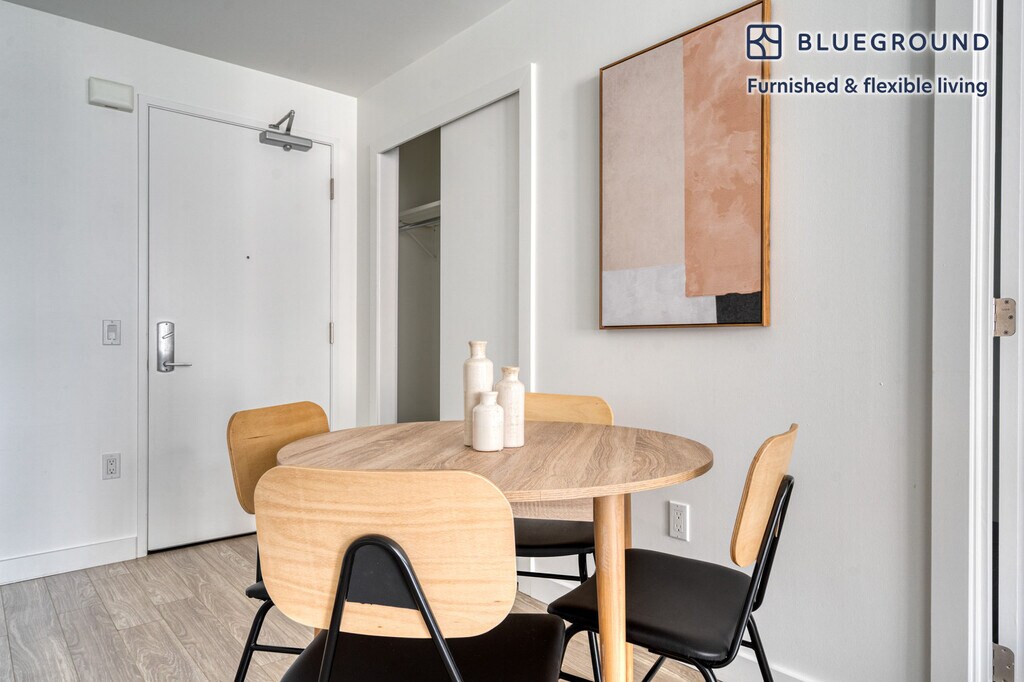 Discover the best of San Francisco, with this one bedroom apartment in SoMa. It’ll be easy to simply show up and start living in this furnished apartment with its fully equipped kitchen, living room, and our dedicated, on-the-ground support. (ID #SFO783) The advertised rate of $5,730/month is the lowest available price, based on a 11 month(s) and 29 day(s) stay with a move-in date of November 2, 2025. Rates vary depending on the duration of stay, season, and other parameters. For exact pricing and additional pricing components, please visit our website and enter your desired move-in and move-out dates. The rate is applicable when billed upfront; it can be higher if billed in multiple payments. Brokers are welcome to reach out. Were you looking for an unfurnished lease? Try Blueground instead and upgrade from unfurnished to furnished living: - Furnished at rates comparable to unfurnished - No setup or furniture costs - save thousands - Move-in ready - save time, just bring your suitcase Designed with you in mind Thoughtfully designed with bespoke finishes, modern furnishings, and a fully equipped kitchen, you’ll enjoy that “I’m home” feeling with this Blueground apartment. Whether you’re lounging in your beautiful living room streaming the latest and greatest entertainment on the smart TV or premium wireless speaker, or getting some well-earned rest on the superior quality mattress with luxury linens, you’ll fall in love with everything this SoMa apartment has to offer. This apartment also offers in-apartment laundry. Sleeping arrangements King Bed, 70.8in/180cm Amenities Building amenities unique to this one bedroom apartment include an on-site: - Doorman - Dryer - Elevator - Washing machine - Lounge - Library - Parking - Pets allowed - Rooftop BBQ - Sauna Arrival and ongoing support The entire apartment is yours to enjoy! Throughout your stay, you’ll have access to our Client Experience team through the Blueground App. You can schedule additional cleanings, submit maintenance requests, and view our neighborhood recommendations with just a few taps. We’ll share all details upon confirmation of your stay. Ideally Located This furnished apartment is located in South of Market, known as SoMa. A trendy, urban district, famous for its excellent art and museum scene. Home to a diverse mix of entrepreneurs and young families, this neighborhood offers hip bars, fine dinings and delicious coffee. Don’t miss the plethora of museums, including a visit to the San Francisco Modern Museum of Art. Baseball lovers frequently visit SoMa, as it is also home to the San Francisco Giants. Other things to note Building amenities may have an extra cost. This Blueground apartment has flexible lease options, allowing you to book it for one month, a year, or more. Pets are welcome, though weight limits and breed restrictions apply and may incur fees. We take great pride in ensuring every photo displayed is shot in our own units with our actual furnishings. That said, we regularly refresh our decor and furniture arrangement, which may differ from what’s pictured.