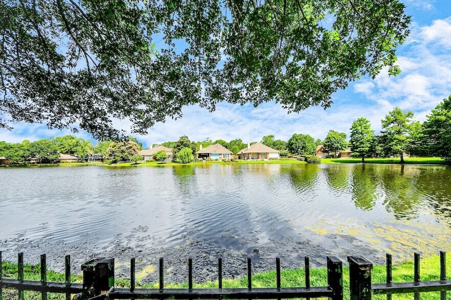 Experience serene lakeside living in this stunning 1-story, 3-bedroom, 2.5-bath patio home in The Retreat of Grogan's Mill. Enjoy amazing lake views and a charming front courtyard. This home boasts an unbeatable location along with recent updates as of March 2024, including fresh interior paint, new carpet in the primary bedroom and sitting room, and luxury vinyl flooring in the family room with a gas fireplace. The open kitchen features a center island, ample counter space, and freshly painted cabinets. Relish the peaceful lake mornings from your patio. Washer, dryer, and refrigerator are included.