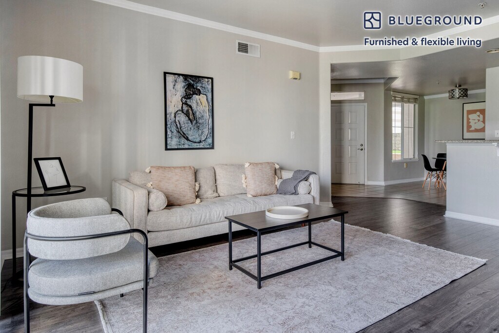 Show up and start living from day one in Santa Clara with this beautiful two bedroom Blueground apartment. You’ll love coming home to this thoughtfully furnished, beautifully designed, and fully equipped Rivermark of Santa Clara home. (ID #SFO1563) The advertised rate of $3,970/month is the lowest available price, based on a 1 month(s) and 27 day(s) stay with a move-in date of January 13, 2026. If you’re looking for a 1-year stay, the rate is $4,260/month. Rates vary depending on the duration of stay, season, and other parameters. For exact pricing and additional pricing components, please visit our website and enter your desired move-in and move-out dates. The rate is applicable when billed upfront; it can be higher if billed in multiple payments. Brokers are welcome to reach out. Were you looking for an unfurnished lease? Try Blueground instead and upgrade from unfurnished to furnished living: - Furnished at rates comparable to unfurnished - No setup or furniture costs - save thousands - Move-in ready - save time, just bring your suitcase Designed with you in mind Thoughtfully designed with bespoke finishes, modern furnishings, and a fully equipped kitchen, you’ll enjoy that “I’m home” feeling with this Blueground apartment. Whether you’re lounging in your pretty living room streaming the latest and greatest entertainment on the smart TV or premium wireless speaker, or getting some well-earned rest on the superior quality mattress with luxury linens, you’ll fall in love with everything this Rivermark of Santa Clara apartment has to offer. This apartment also offers in-apartment laundry. Sleeping arrangements King Bed, 70.8in/180cm Queen Bed, 63in/160cm Amenities Building amenities unique to this two bedroom apartment include an on-site: - BBQ Area - Dryer - Elevator - Game room - Swimming pool - Washing machine - Parking - Pets allowed Arrival and ongoing support The entire apartment is yours to enjoy! Throughout your stay, you’ll have access to our Client Experience team through the Blueground App. You can schedule additional cleanings, submit maintenance requests, and view our neighborhood recommendations with just a few taps. We’ll share all details upon confirmation of your stay. Other things to note Building amenities may have an extra cost. This Blueground apartment has flexible lease options, allowing you to book it for one month, a year, or more. Pets are welcome, though weight limits and breed restrictions apply and may incur fees. Parking is offered based on availability and is subject to a fee. We take great pride in ensuring every photo displayed is shot in our own units with our actual furnishings. That said, we regularly refresh our decor and furniture arrangement, which may differ from what’s pictured. [SI]