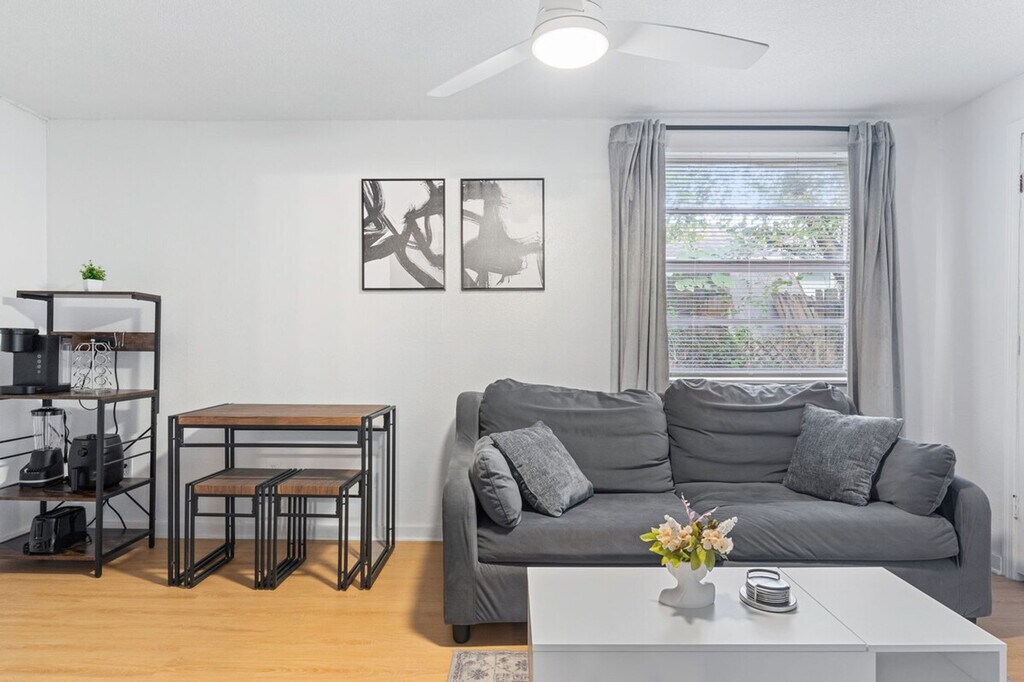 Feel at home in this fully furnished 1-bedroom, 1-bath house. This house features a full kitchen, central AC and heating with mini split, a shared washer and dryer, fast Wi-Fi, and 2 smart TVs. Driveway parking and pets are welcome with a $150 pet fee. Located close to popular attractions, transportation, and amenities, this apartment is near St Josephs Hospital (6.1 miles), Tampa General Hospital (8.5 miles), Memorial Hospital of Tampa (9.5 miles), AdventHealth Carrollwood (6.9 miles), AdventHealth Tampa (6 miles), Armature Works (6.3 miles), Downtown, Tampa (6 miles), Riverwalk (6.5 miles), Hyde Park (8.9 miles), SoHo (8.1 miles), International Plaza (9 miles), Bayshore Blvd (12.7 miles), and MacDill Air Force Base (15.2 miles). Check-in is enabled by a smart lock. Includes workstations with office desks and chairs. [SI]