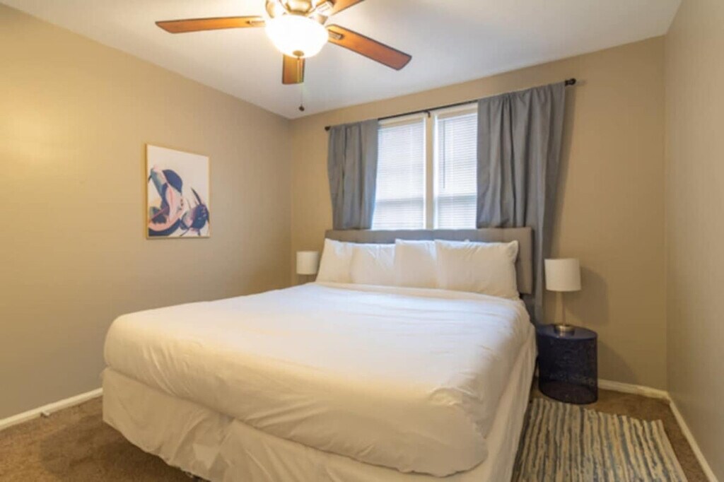 The advertised rate of $3,351/month is the lowest available price, based on a 1 month(s) stay with a move-in date of April 12, 2026. Rates vary depending on the duration of stay, season, and other parameters. For exact pricing and additional pricing components, please visit our website and enter your desired move-in and move-out dates. The rate is applicable when billed upfront; it can be higher if billed in multiple payments. Welcome to the coziest cottage in Columbus! This 2-bedroom, 1-bathroom home offers all the comforts of home while being centrally located. You're only 15 minutes from downtown Columbus and minutes from I-185, which will take you right to Fort Moore. This home is perfect for couples, families, or friends. Guests will enter through the front door using a digital keypad. Upon entering the cottage, you'll find an open-concept layout with a living room featuring a sleeper sofa, comfy chairs, and a large Smart TV. The dining room and kitchen are just off the living room, with a kitchenette that includes a stove, microwave, and full-size fridge. The cottage has two bedrooms, one with a queen bed and the other with a double bed and a twin bed. A full bathroom with a tub is also available. A pack 'n play/travel crib is available upon request. Pets are welcome with a non-refundable pet fee. Pets must be crated when left unattended, are not allowed on furniture or beds, and all waste must be cleaned up from the yard. If there is evidence of pet hair on the furniture, excess hair in the home, stains, or waste found in the yard or home, you will be charged the cost to clean this. This cottage is located in a very quiet and safe residential neighborhood. There is no public transportation in the neighborhood, so you will need to drive or plan to take a cab or Uber. The laundry space is shared between all units. Quiet hours are between 10 PM and 7 AM. If quiet hours are violated and neighbors are disturbed, your reservation will be canceled, you will be required to leave the property immediately, and you will not be eligible for any refunds. Smoking is prohibited, and if our cleaning crew reports any signs of smoking cigarettes, vapes, e-cigs, pipes, etc., in or around the home, an automatic $500 damage charge will be incurred. The same charge applies if cigarette butts are found outside of the home. If marijuana is smoked in or around the home, a $500 fee will be charged, and details about the reservation may be turned over to the appropriate authorities. Parties are prohibited at the home, and other events are permitted only with prior approval. You will be responsible for any damage to the home or its furnishings during your stay. Please bag all trash and place it in the bins provided. There is a $100 charge for third-party trash removal if an excessive amount of trash is left at the property. Registration Number: STVR-11-23-7541 [SI]