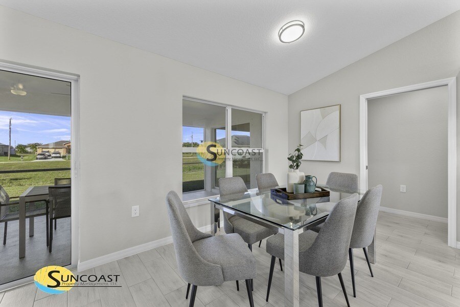 Coming Soon Welcome to this stunning 4-bedroom, 2.5-bathroom home, built in 2025 and designed to offer the perfect blend of luxury and comfort. With 1,683 sqft of beautifully crafted living space, this home provides ample room for families or anyone who enjoys spacious, open living. The modern design is complemented by high-end features like hurricane impact windows, ensuring your peace of mind, no matter the weather. The two-car garage adds convenience and plenty of storage space, while the screened-in lanai offers an inviting outdoor retreat where you can unwind and enjoy the Florida weather in comfort. Inside, you'll find a gourmet kitchen with sparkle white quartz countertops and stainless steel appliances, perfect for those who love to cook and entertain. The sleek design continues with tile flooring throughout, adding both style and ease of maintenance to every room. The master suite is a true oasis, featuring a luxurious bathroom with dual sinksideal for couples or anyone seeking a little extra space in their daily routine. This home is nestled in a serene area surrounded by beautiful golf courses and country clubs, making it an ideal location for golf enthusiasts or those looking for a peaceful setting. For added convenience, youll be just moments away from shopping centers, offering easy access to all your favorite stores, restaurants, and entertainment options. With textured walls and ceilings that add character to every room, this home is as charming as it is functional. Dont miss out on the opportunity to make this exceptional Cape Coral property your next home. Schedule a tour today and see firsthand how this beautiful rental can enhance your lifestyle! Suncoast's Choose How to Pay Program = More Flexibility. High upfront costs shouldnt hold you back from finding the right home. Thats why we offer two simple options: 1. Pay the traditional full security deposit at move-in, or 2. Choose our Flexible Security Deposit Plan, which lets you spread out your payments while still keeping the same coverage. This program helps ease move-in costs without sacrificing peace of mind. Photos are for illustration purposes only and some details may differ! All SunCoast Property Management residents are enrolled in the Resident Benefits Package (RBP) for $75.00/month which includes liability insurance, credit building to help boost the residents credit score with timely rent payments, up to $1M Identity Theft Protection, HVAC air filter delivery (for applicable properties), move-in concierge service making utility connection and home service setup a breeze during your move-in, our best-in-class resident rewards program, on-demand pest control, and much more! The RBP is an additional cost and is not included in the advertised monthly rental rate. More details upon application. BEWARE of potential fraud. If you suspect one of our properties being listed fraudulently, please email: Suncoast Property Management does NOT ask any of our potential residents to wire funds. Our main office is located in Jacksonville; Florida and you can visit our website to verify any rental listing. Lease Administrative Fee. Upon execution of this Lease, Tenant will pay Landlord a nonrefundable Lease Administrative Fee of $200.00. Disposal Garage Pets Allowed Washer/Dryer Connections