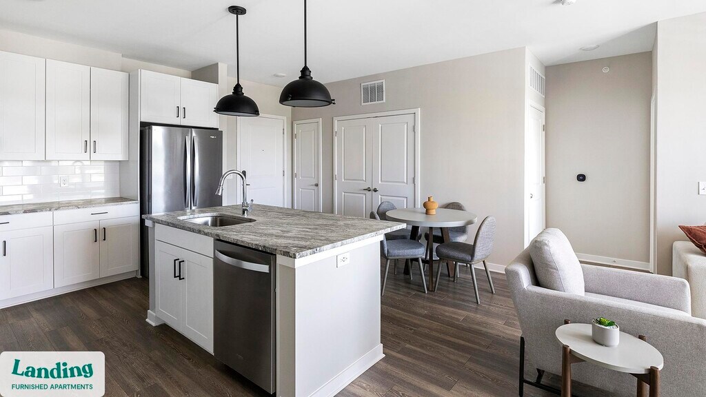 Landing offers flexible lease terms from weeks to months. Please always visit our website or contact us for the latest pricing & availability. Stay longer, save more: 6-Month Minimum base rent: starts at $1875/mo 12-Month Minimum base rent: starts at $1460/mo Landing offers flexible leases across a network of over 35,000 fully-furnished apartments throughout 375+ cities so you can rent on your terms, practically anywhere, and avoid the hassle of paying deposits or application fees. Visit to learn about all the benefits of a Landing membership, see our competitive up-to-date pricing, explore available apartments, take virtual tours, and make reservations online without jumping through traditional rental hoops. Landing's apartments at Laurel at Dry Creek are designed for comfortable, easy living, with the ability to stay as long as you like. Experience living with Landing Every apartment is outfitted with all the modern essentials including: custom-designed furnishings, a fully-equipped kitchen with deluxe stainless steel appliances, a gourmet coffee maker, premium linens, Smart TVs, and incredibly fast, reliable internet for working from home. When you live with Landing, you'll enjoy a hassle-free experience with the added benefit of 24/7 access to our dedicated member experience team. Some of the nitty-gritty: a background check and proof of income are required; we're completely smoke-free; bundled utility packages and pricing vary based on length of stay; pet-friendly options available; listed price reflects a 12-month minimum stay.