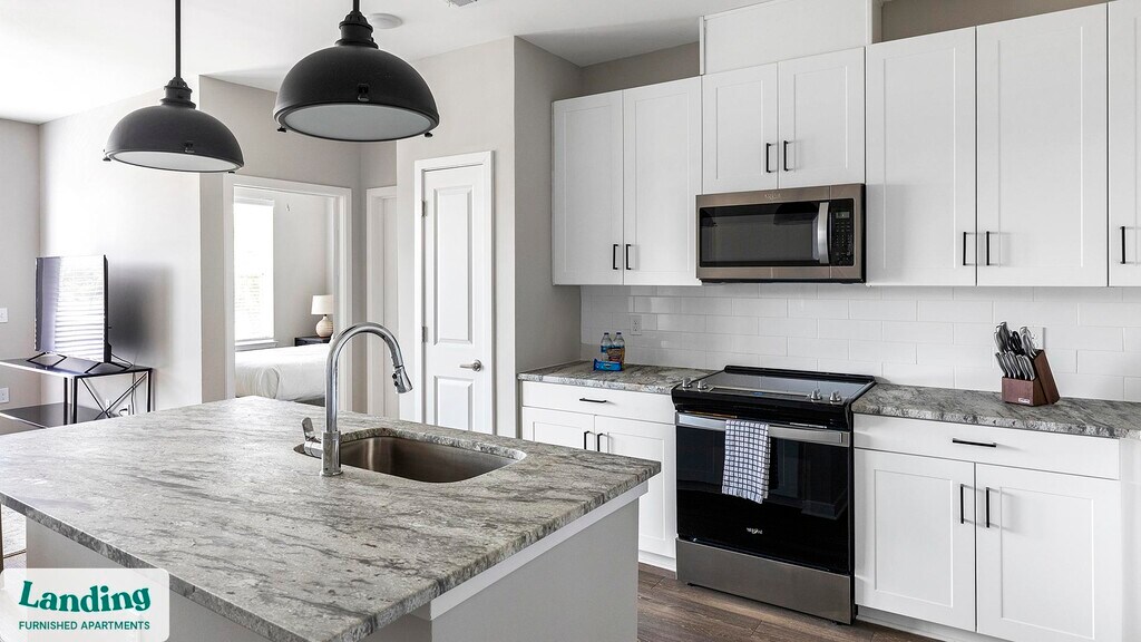 Landing offers flexible lease terms from weeks to months. Please always visit our website or contact us for the latest pricing & availability. Stay longer, save more: 6-Month Minimum base rent: starts at $2083/mo 12-Month Minimum base rent: starts at $1797/mo Landing offers flexible leases across a network of over 35,000 fully-furnished apartments throughout 375+ cities so you can rent on your terms, practically anywhere, and avoid the hassle of paying deposits or application fees. Visit to learn about all the benefits of a Landing membership, see our competitive up-to-date pricing, explore available apartments, take virtual tours, and make reservations online without jumping through traditional rental hoops. Landing's apartments at Laurel at Dry Creek are designed for comfortable, easy living, with the ability to stay as long as you like. Experience living with Landing Every apartment is outfitted with all the modern essentials including: custom-designed furnishings, a fully-equipped kitchen with deluxe stainless steel appliances, a gourmet coffee maker, premium linens, Smart TVs, and incredibly fast, reliable internet for working from home. When you live with Landing, you'll enjoy a hassle-free experience with the added benefit of 24/7 access to our dedicated member experience team. Some of the nitty-gritty: a background check and proof of income are required; we're completely smoke-free; bundled utility packages and pricing vary based on length of stay; pet-friendly options available; listed price reflects a 12-month minimum stay.