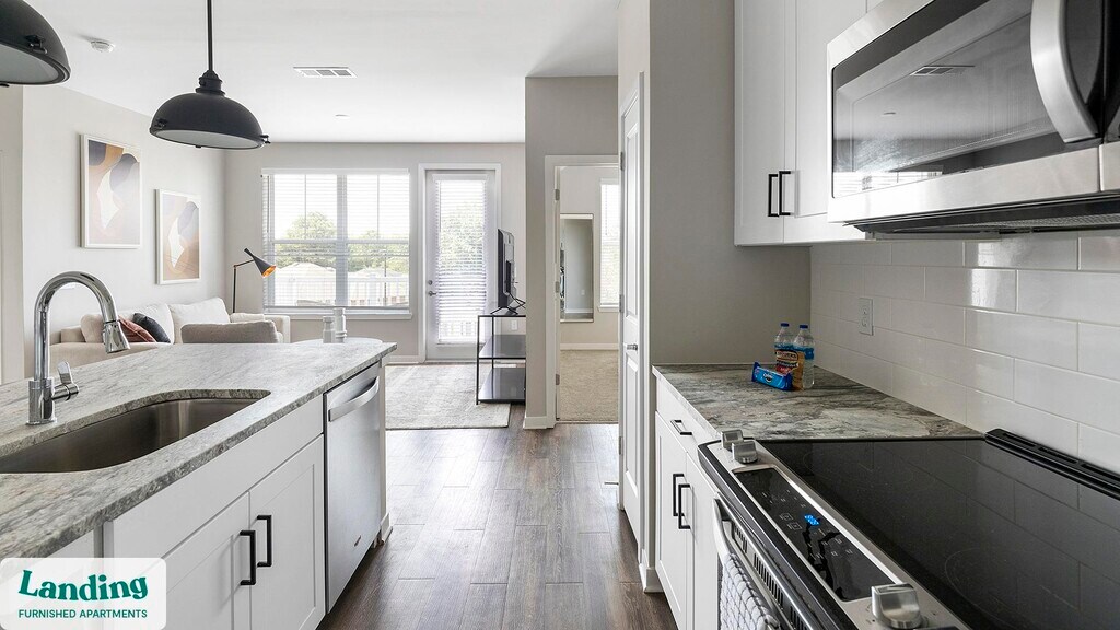 Landing offers flexible lease terms from weeks to months. Please always visit our website or contact us for the latest pricing & availability. Stay longer, save more: 6-Month Minimum base rent: starts at $1625/mo 12-Month Minimum base rent: starts at $1773/mo Landing offers flexible leases across a network of over 35,000 fully-furnished apartments throughout 375+ cities so you can rent on your terms, practically anywhere, and avoid the hassle of paying deposits or application fees. Visit to learn about all the benefits of a Landing membership, see our competitive up-to-date pricing, explore available apartments, take virtual tours, and make reservations online without jumping through traditional rental hoops. Landing's apartments at Laurel at Dry Creek are designed for comfortable, easy living, with the ability to stay as long as you like. Experience living with Landing Every apartment is outfitted with all the modern essentials including: custom-designed furnishings, a fully-equipped kitchen with deluxe stainless steel appliances, a gourmet coffee maker, premium linens, Smart TVs, and incredibly fast, reliable internet for working from home. When you live with Landing, you'll enjoy a hassle-free experience with the added benefit of 24/7 access to our dedicated member experience team. Some of the nitty-gritty: a background check and proof of income are required; we're completely smoke-free; bundled utility packages and pricing vary based on length of stay; pet-friendly options available; listed price reflects a 12-month minimum stay.