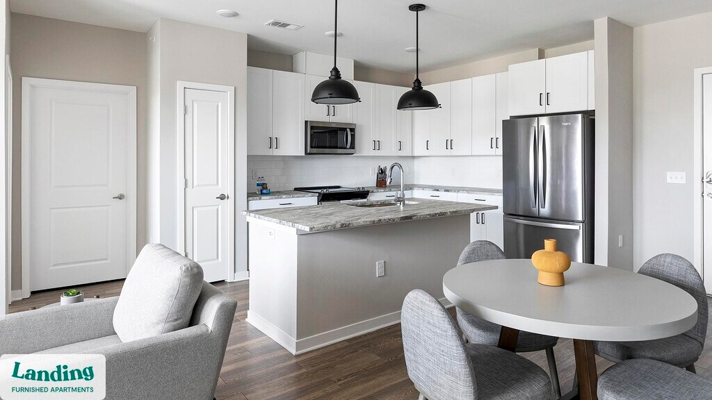 Landing offers flexible lease terms from weeks to months. Please always visit our website or contact us for the latest pricing & availability. Stay longer, save more: 6-Month Minimum base rent: starts at $1375/mo 12-Month Minimum base rent: starts at $1460/mo Landing offers flexible leases across a network of over 35,000 fully-furnished apartments throughout 375+ cities so you can rent on your terms, practically anywhere, and avoid the hassle of paying deposits or application fees. Visit to learn about all the benefits of a Landing membership, see our competitive up-to-date pricing, explore available apartments, take virtual tours, and make reservations online without jumping through traditional rental hoops. Landing's apartments at Laurel at Dry Creek are designed for comfortable, easy living, with the ability to stay as long as you like. Experience living with Landing Every apartment is outfitted with all the modern essentials including: custom-designed furnishings, a fully-equipped kitchen with deluxe stainless steel appliances, a gourmet coffee maker, premium linens, Smart TVs, and incredibly fast, reliable internet for working from home. When you live with Landing, you'll enjoy a hassle-free experience with the added benefit of 24/7 access to our dedicated member experience team. Some of the nitty-gritty: a background check and proof of income are required; we're completely smoke-free; bundled utility packages and pricing vary based on length of stay; pet-friendly options available; listed price reflects a 12-month minimum stay.