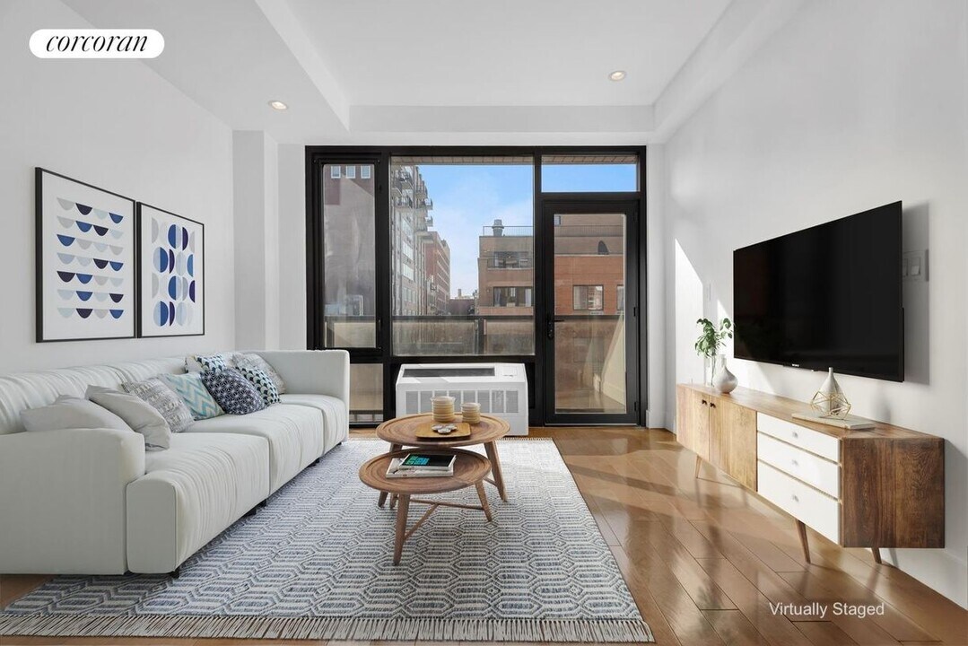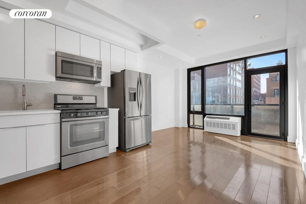 Welcome home to this beautifully renovated 1 bedroom apartment with a Juliet balcony, flooded with natural light. Located in the heart of the East Village, the perfect oasis awaits you with a spectacular rooftop deck offering sweeping views of the Manhattan skyline.The home flows seamlessly into a bright, open-concept living room and kitchen. The kitchen is equipped with sleek granite countertops, high-end stainless steel appliances, dishwasher and an in-unit washer and dryer. The living room features floor-to-ceiling windows and stunning hardwood floors throughout. The spacious primary bedroom accommodates a queen-size bedroom set, features floor-to-ceiling windows, and includes a large closet. The modern bathroom offers both a soaking tub and a stand-up shower.Building amenities include a gym, pet spa, lounge with a pool table, bike room, elevator, mailroom, virtual doorman and 24-hour surveillance cameras. Conveniently located just moments from transportation, shops, restaurants, the farmers market, and Tompkins Square Park.Call or text today to schedule a private viewing.