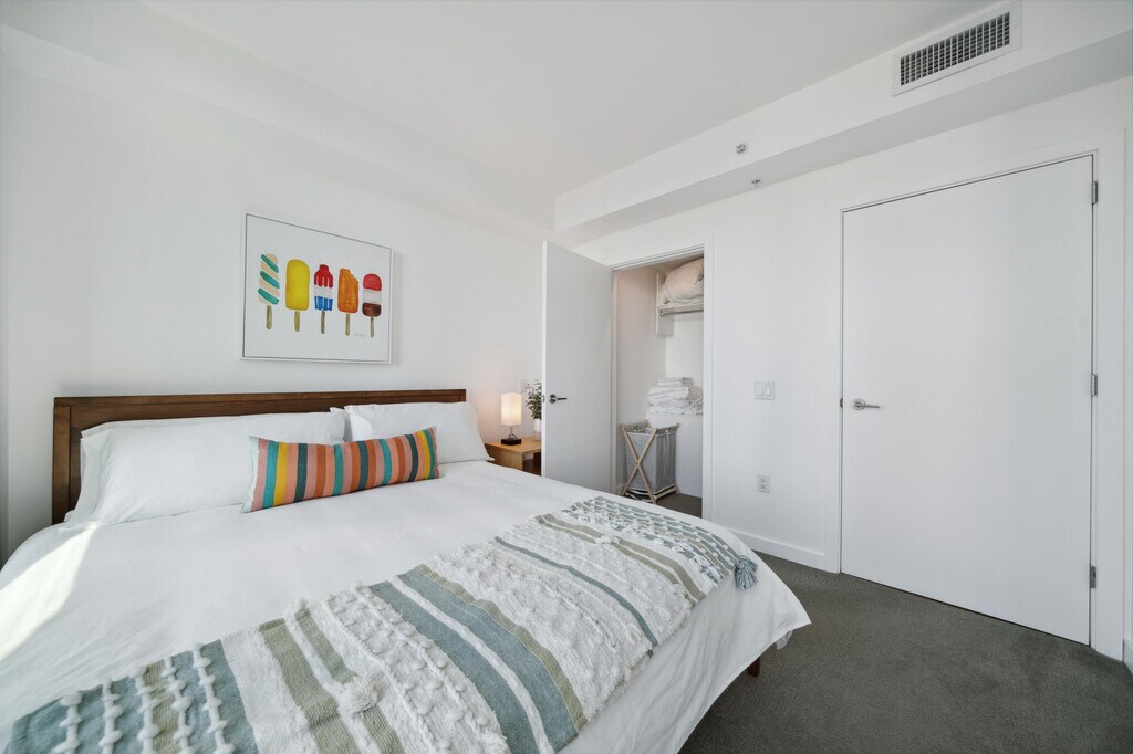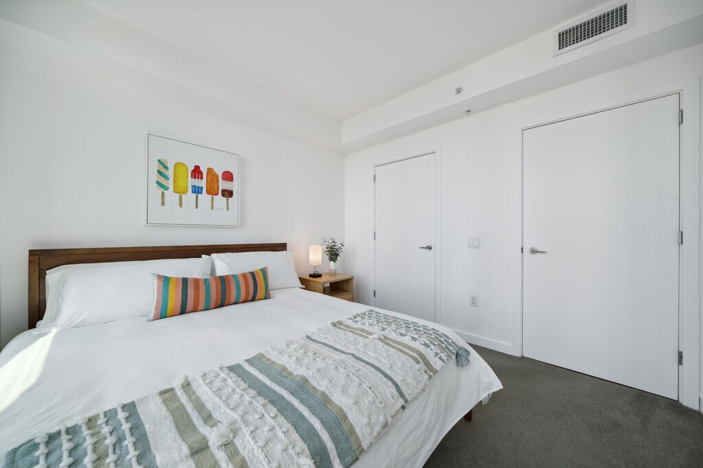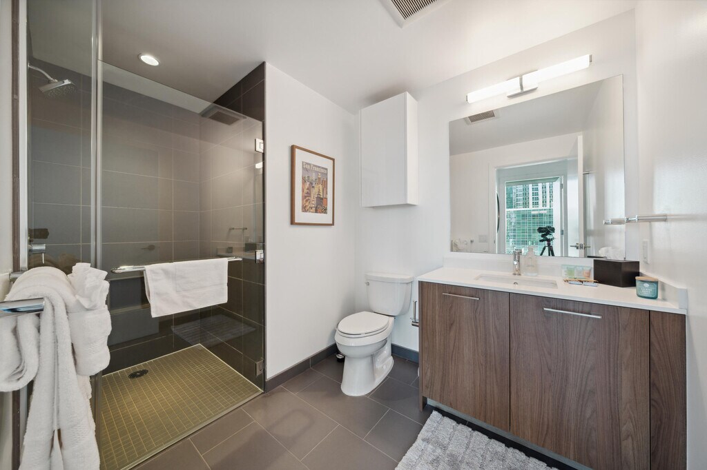 High-rise luxury living awaits you at San Francisco’s most desirable new address. This apartment at 399 Fremont is your key to sophistication and convenience in the historic yet modern neighborhood of Rincon Hill. Towering over the Bay Bridge and only steps from world-class restaurants, galleries, and nightlife, this 42-story skyscraper offers everything you need to work and play from home. Take in a game or concert at Oracle Park, stroll along the Embarcadero to watch the ships go by, or just enjoy the sunlight pouring in from the floor-to-ceiling windows of your living room. From state-of-the-art amenities to ultra-modern and bright living spaces with inspirational views, this fully furnished 1-bedroom apartment is custom-designed for the remote worker looking for a comfortable environment in which to be productive. This unit includes a fully equipped kitchen, full bathroom, king-size mattress, plenty of storage, smart TV, and all utilities. Most importantly, it features a full home office set-up with private high-speed internet that you won't find anywhere else. Secure garage parking is available by request only and based on availability. Guest parking is available at $35 per day and storage is available starting at $175 per month. Internet speeds are not guaranteed and may fluctuate based on your computer model and the router location. A laptop computer is not included in the home office set-up. Early check-in from 10am-3pm will incur a fee of $75 and early check-in before 10am will incur a fee of 1 full night's rent based on selected dates. Late check-out from 11am-3pm will incur a fee of $75 and late check-out after 3pm will incur a fee of 1 full night's rent based on selected dates. Late check-outs must be requested at least 48 hours in advance. Includes private high-speed internet, standing desk (Uplift), ergonomic work chair (Uplift), 34-inch ultra-wide monitor (Samsung), microphone (Blue Yeti), webcam (Logitech), computer speakers (Bose), LED streaming light, green screen, keyboard (Logitech), mouse (Logitech), laptop stand, and TOTU 16-in-1 Triple Display USB-C 3.1 Docking Station. [SI]