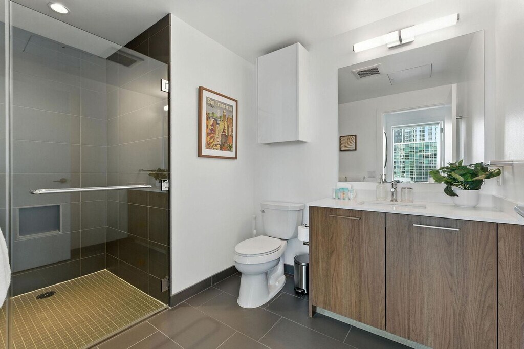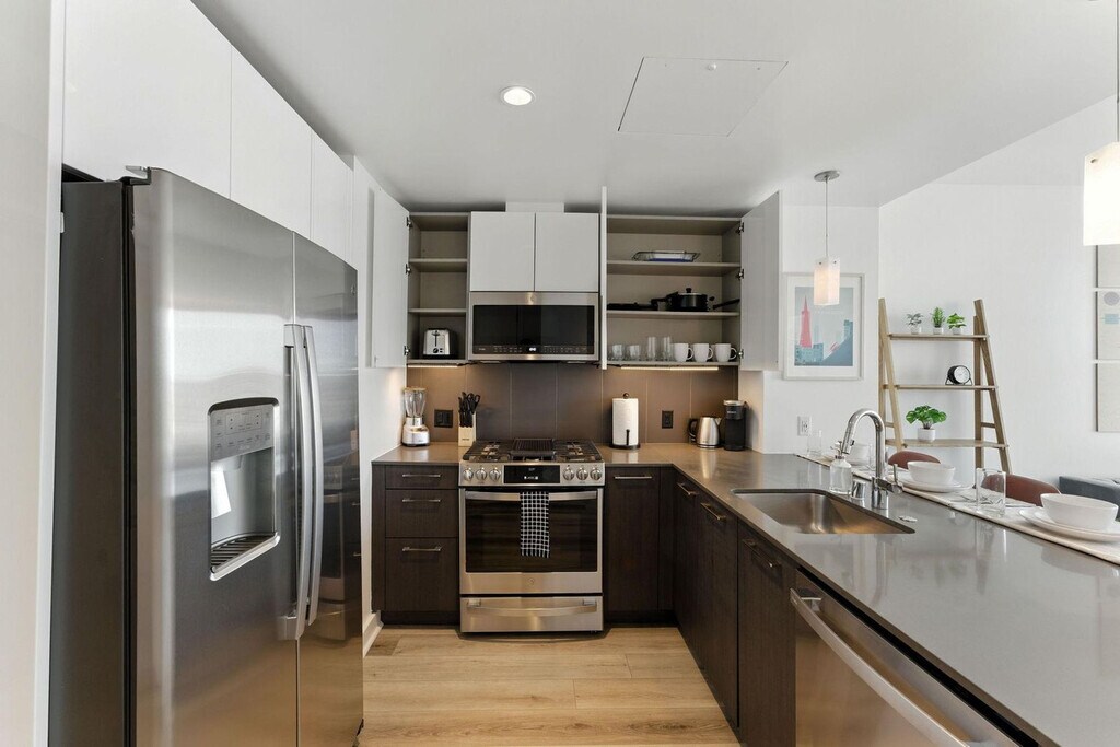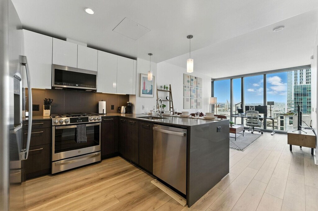 Feel at home in this high-rise, luxury apartment at 399 Fremont, your key to sophistication and convenience in San Francisco’s Rincon Hill neighborhood. This fully furnished, 1-bedroom apartment is custom-designed for a comfortable and productive environment. It includes a fully equipped kitchen, full bathroom, and smart TV. Amenities include central air conditioning and heating, stainless steel appliances, hardwood floors, floor-to-ceiling windows, in-unit laundry, walk-in closets, a fitness center with Technogym equipment, a spinning studio and yoga room, a business center and private conference rooms, a media lounge, social lounge, and TRX room, an outdoor patio with a grilling area, an outdoor, heated lap pool, and 24-hour concierge services. Secure garage parking is available by request only, based on availability, and guest parking is available at $35 per day. Storage is available starting at $175 per month. Towering over the Bay Bridge and steps from world-class restaurants, galleries, and nightlife, this 42-story skyscraper offers everything you need to work and play. Take in a game or concert at Oracle Park, stroll along the Embarcadero to watch the ships go by, or just enjoy the sunlight pouring in from the floor-to-ceiling windows. Internet speeds are not guaranteed and may fluctuate based on your computer model and the router location. Early check-in from 10 am to 3 pm will incur a fee of $75, and early check-in before 10 am will incur a fee of 1 full night's rent (based on selected dates). Late check-out from 11 am to 3 pm will incur a fee of $75, and late check-out after 3 pm will incur a fee of 1 full night's rent (based on selected dates). Late check-outs must be requested at least 48 hours in advance. Includes private high-speed internet, a standing desk (Uplift), an ergonomic work chair (Uplift), a 34-inch ultra-wide monitor (Samsung), a microphone (Blue Yeti), a webcam (Logitech), computer speakers (Bose), an LED streaming light, a green screen, a keyboard (Logitech), a mouse (Logitech), a laptop stand, and a TOTU 16-in-1 Triple Display USB-C 3.1 Docking Station. A laptop computer is not included. Partners reserve the right to conduct secure ID verification, background checks and request Proof of Income. Guests will have 24 hours to complete these steps. Booking confirmation is contingent upon the successful completion of these checks, as well as meeting the minimum eligibility requirements. [SI]