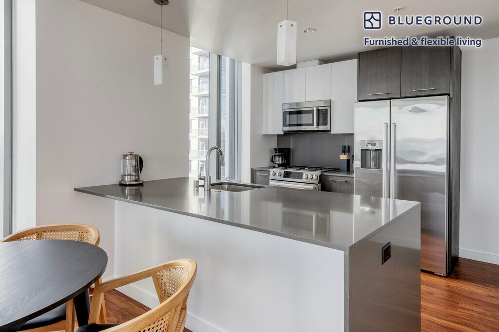 Show up and start living from day one in San Francisco with this beautiful one bedroom Blueground apartment. You’ll love coming home to this thoughtfully furnished, beautifully designed, and fully equipped Rincon Hill home. (ID #SFO1676) The advertised rate of $5,700/month is the lowest available price, based on a 12 month(s) stay with a move-in date of February 10, 2026. Rates vary depending on the duration of stay, season, and other parameters. For exact pricing and additional pricing components, please visit our website and enter your desired move-in and move-out dates. The rate is applicable when billed upfront; it can be higher if billed in multiple payments. Brokers are welcome to reach out. Were you looking for an unfurnished lease? Try Blueground instead and upgrade from unfurnished to furnished living: - Furnished at rates comparable to unfurnished - No setup or furniture costs - save thousands - Move-in ready - save time, just bring your suitcase Designed with you in mind Thoughtfully designed with bespoke finishes, modern furnishings, and a fully equipped kitchen, you’ll enjoy that “I’m home” feeling with this Blueground apartment. Whether you’re lounging in your charming living room streaming the latest and greatest entertainment on the smart TV or premium wireless speaker, or getting some well-earned rest on the superior quality mattress with luxury linens, you’ll fall in love with everything this Rincon Hill apartment has to offer. This apartment also offers in-apartment laundry. Sleeping arrangements King Bed, 70.8in/180cm Amenities Building amenities unique to this one bedroom apartment include an on-site: - Dryer - Elevator - Swimming pool - Washing machine - Media room - Parking Arrival and ongoing support The entire apartment is yours to enjoy! Throughout your stay, you’ll have access to our Client Experience team through the Blueground App. You can schedule additional cleanings, submit maintenance requests, and view our neighborhood recommendations with just a few taps. We’ll share all details upon confirmation of your stay. Ideally Located This furnished apartment is located in the fast-growing Rincon Hill neighborhood. One of the primary appeals of the area is its close proximity to downtown offices, public transit (BART), shopping and dining. A walk along the waterfront on the Embarcadero pedestrian promenade and the Bay Bridge, Rincon Hill invites you to explore surroundings on foot. A must-do Saturday morning activity is a walk down to the Farmer’s Market near the Ferry Building. Emerald Park is also in close distance. Other things to note Building amenities may have an extra cost. This Blueground apartment has flexible lease options, allowing you to book it for one month, a year, or more. Parking is offered based on availability and is subject to a fee. We take great pride in ensuring every photo displayed is shot in our own units with our actual furnishings. That said, we regularly refresh our decor and furniture arrangement, which may differ from what’s pictured. [SI]