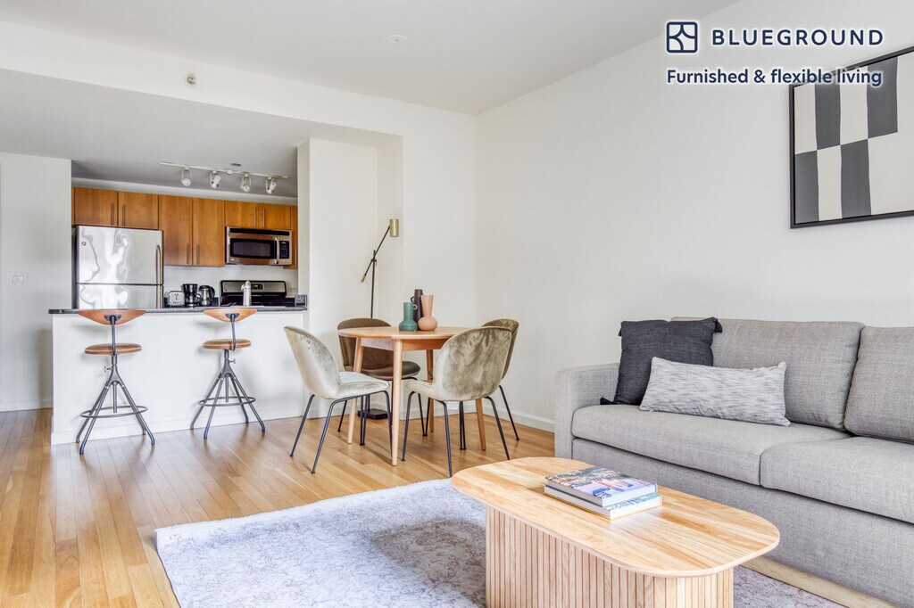 Discover the best of New York, with this one bedroom apartment in Long Island City. It’ll be easy to simply show up and start living in this furnished apartment with its fully equipped kitchen, living room, and our dedicated, on-the-ground support. (ID #NYC690) The advertised rate of $4,830/month is the lowest available price, based on a 12 month(s) stay with a move-in date of April 24, 2026. Rates vary depending on the duration of stay, season, and other parameters. For exact pricing and additional pricing components, please visit our website and enter your desired move-in and move-out dates. The rate is applicable when billed upfront; it can be higher if billed in multiple payments. Brokers are welcome to reach out. Were you looking for an unfurnished lease? Try Blueground instead and upgrade from unfurnished to furnished living: - Furnished at rates comparable to unfurnished - No setup or furniture costs - save thousands - Move-in ready - save time, just bring your suitcase Designed with you in mind Gorgeous furniture, fully equipped kitchen, smart TV, and a premium wireless speaker are just a few of the amenities you’ll find inside this one bedroom apartment. Ideally located in New York, you’ll find a lot to love outside as well. When you’re ready to relax, you’ll be happy to discover every Blueground bedroom comes with superior quality mattresses, fully stocked linens, and cozy towels. We handle everything so you can simply show up and start living. This apartment also offers in-apartment laundry. Sleeping arrangements Queen Bed, 63in/160cm Amenities Building amenities unique to this one bedroom apartment include an on-site: - Doorman - Dryer - Elevator - Swimming pool - Washing machine - Lounge - Pets allowed - Playroom Arrival and ongoing support The entire apartment is yours to enjoy! Throughout your stay, you’ll have access to our Client Experience team through the Blueground App. You can schedule additional cleanings, submit maintenance requests, and view our neighborhood recommendations with just a few taps. We’ll share all details upon confirmation of your stay. Ideally Located This furnished apartment is located in Long Island City, a neighborhood with amazing East River views. Nowadays, the area has become one of the best downtown Manhattan alternatives. Here, locals can enjoy a mix of activities from shopping on Jackson Avenue to indoor arts entertainment at MoMA PS1. Long Island City is also filled with modern public green spaces ideal for a stroll or jog. Grand Central Station is only a 20-minute subway ride away. Other things to note Building amenities may have an extra cost. This Blueground apartment has flexible lease options, allowing you to book it for one month, a year, or more. Pets are welcome, though weight limits and breed restrictions apply and may incur fees. Brokes CYOF. We take great pride in ensuring every photo displayed is shot in our own units with our actual furnishings. That said, we regularly refresh our decor and furniture arrangement, which may differ from what’s pictured. [SI]