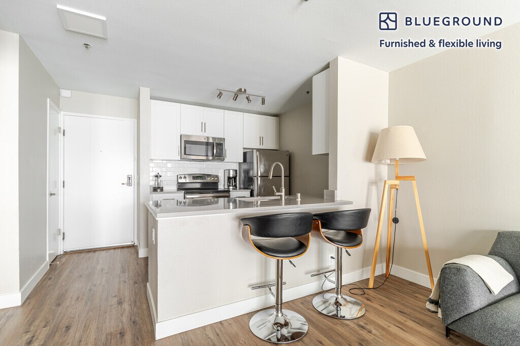 Show up and start living from day one in San Francisco with this pretty two bedroom Blueground apartment. You’ll love coming home to this thoughtfully furnished, beautifully designed, and fully equipped South Beach home. (ID #SFO1818) The advertised rate of $4,390/month is the lowest available price, based on a 12 month(s) stay with a move-in date of December 1, 2026. Rates vary depending on the duration of stay, season, and other parameters. For exact pricing and additional pricing components, please visit our website and enter your desired move-in and move-out dates. The rate is applicable when billed upfront; it can be higher if billed in multiple payments. Brokers are welcome to reach out. Were you looking for an unfurnished lease? Try Blueground instead and upgrade from unfurnished to furnished living: - Furnished at rates comparable to unfurnished - No setup or furniture costs - save thousands - Move-in ready - save time, just bring your suitcase Designed with you in mind Gorgeous furniture, fully equipped kitchen, smart TV, and a premium wireless speaker are just a few of the amenities you’ll find inside this two bedroom apartment. Ideally located in San Francisco, you’ll find a lot to love outside as well. When you’re ready to relax, you’ll be happy to discover every Blueground bedroom comes with superior quality mattresses, luxury linens, and cozy towels. We handle everything so you can simply show up and start living. This apartment also offers in-floor laundry. Sleeping arrangements King Bed, 70.8in/180cm King Bed, 70.8in/180cm Amenities Building amenities unique to this two bedroom apartment include an on-site: - Dryer of floor - Elevator - Swimming pool - Washing machine on floor - Lounge - Parking - Pets allowed - Playground Arrival and ongoing support The entire apartment is yours to enjoy! Throughout your stay, you’ll have access to our Client Experience team through the Blueground App. You can schedule additional cleanings, submit maintenance requests, and view our neighborhood recommendations with just a few taps. We’ll share all details upon confirmation of your stay. Ideally Located This furnished rental is located in San Francisco’s South Beach. One of the newest districts in the city, it is ideal for fitness junkies and those who love an active lifestyle. There are several paved pathways perfect for running, biking and skating. The SF Giants park is located here, so heading to a baseball game on the weekends is a breeze. Trendy restaurants and chic cafes can be found all over. Offering picturesque views of the bay, this once dilapidated waterfront area has been transformed. From here, the Ferry Building is only 10 minutes away by public transit. Other things to note Building amenities may have an extra cost. This Blueground apartment has flexible lease options, allowing you to book it for one month, a year, or more. Pets are welcome, though weight limits and breed restrictions apply and may incur fees. Parking is offered based on availability and is subject to a fee. We take great pride in ensuring every photo displayed is shot in our own units with our actual furnishings. That said, we regularly refresh our decor and furniture arrangement, which may differ from what’s pictured. Also note - There are stairs leading up to the entrance of this apartment, but no elevator