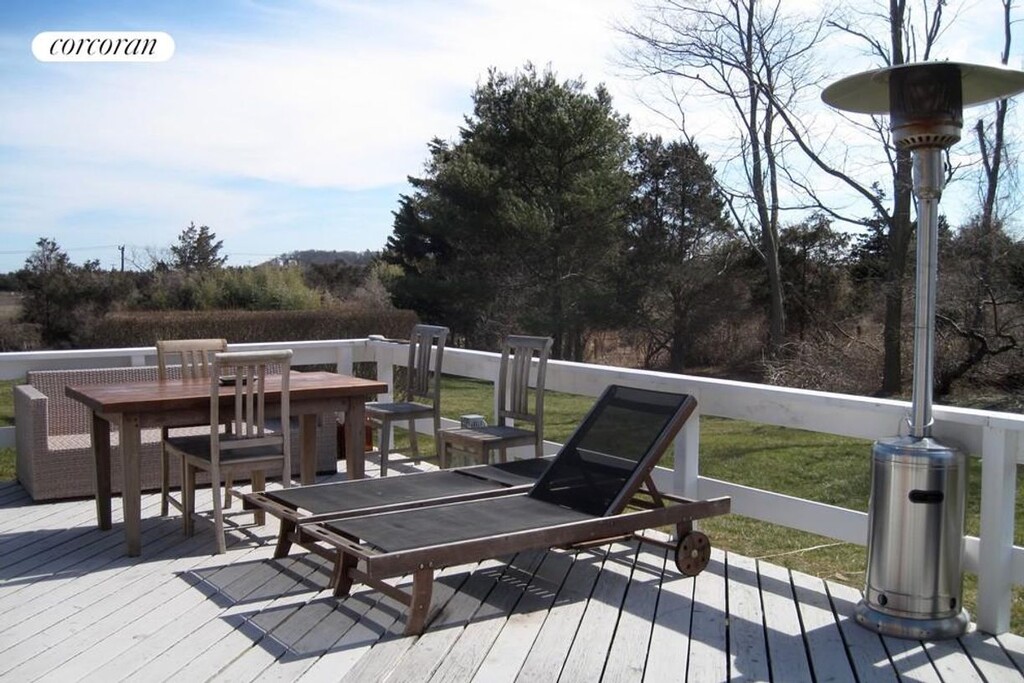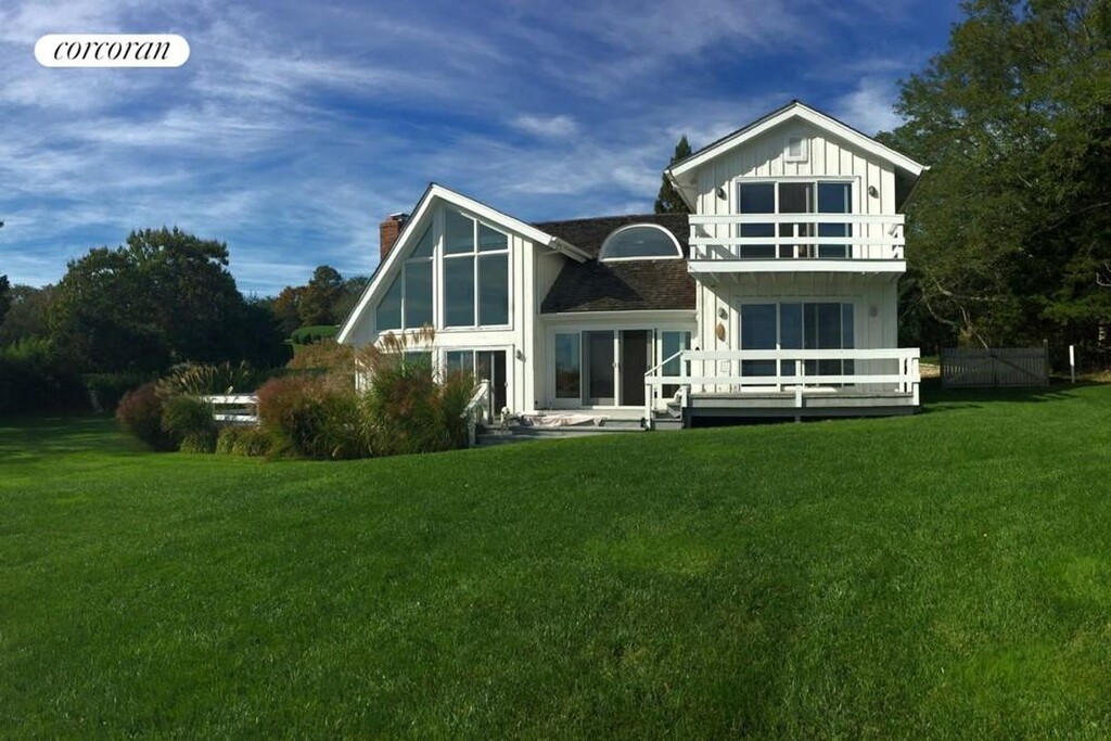 This beautiful Contemporary home has 1.8 acres of rolling green lawn and water views of both Coecles Harbor and Gardiner's Bay. The main floor has a great room with fireplace, vaulted ceilings, dining area and two-story windows that maximize the view. There is a wrap deck easily accessed from the living areas where there is a new gas grill and heat lamp for cooler summer evenings. The kitchen has stainless appliances, gas stove, farm sink and granite counter tops. There are two bedrooms on the main level and a full bath in the hall. One of these bedrooms has a deck and pool view. The second floor has a media room with skylights and a futon sofa suitable as an extra guest bedroom. Across the open landing which also has a waterview is the master suite with private bath, waterside balcony deck and separate laundry room. Renovations on the bathrooms has just been completed. Stylishly and comfortably furnished and well located for an easy jaunt to Menhaden Lane town beach, Gardiners Bay Country Club golf course and Ram Island causeway beaches. [[Rental Registration # 2025-L-0012]]