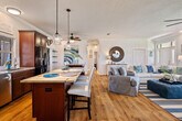 Experience beach life in this beautiful 3-bedroom, 2-bathroom home with a romantic heated pool. The luxurious open floor plan includes a large kitchen with a center island, a cozy family room with a large screen TV, and a spacious master suite with a freestanding tub and walk-in shower. Nestled on a private 0.5-acre lot, this home offers a private yard with an in-ground electric heated pool and a 4-car garage with ample driveway space, perfect for your RV, boat, and outdoor toys. This pet-friendly property is designed for relaxation and entertainment, making it the perfect beach getaway. This home is designed for relaxation and entertainment, featuring a luxurious open floor plan with a large kitchen and center island, perfect for family gatherings. The cozy family room offers a large screen TV and comfortable seating. The master suite boasts a king-size bed and a large screen TV, with a master bathroom equipped with a freestanding tub and a large walk-in shower. A separate room for kids with a twin bed and trundle is included in the master suite, making it ideal for families. The other two bedrooms feature luxurious queen-size beds and share a beautifully designed second bathroom. The fully stocked kitchen includes dishes, pots, pans, and cooking utensils, and the expandable dining table comfortably seats eight. Pool heat is available for $287 per week, $50 per day for short stays, and $200 per week for long stays. Pets are welcome for $100 per pet plus tax. Please let us know in advance if you intend to pay for the pool to be heated or if you plan to bring your pet so we can ensure everything is ready for your visit. Explore the surrounding area with miles of walking and biking trails and parks just minutes from the house. Publix is only 0.25 miles away, along with many eateries, a wine and cheese shop, public tennis courts, and a boat launch at Bings Landings. Enjoy a short 10-minute drive to Flagler Beach, 25 minutes to St Augustine, 30 minutes to Daytona Beach, and 1.5 hours to Disney parks. This beautiful ranch home is located on a 0.5-acre lot within a short walk to the beach, offering the beach life you have always dreamed of. Your vacation home will have basic starter supplies for your arrival, including toilet paper, shampoo, conditioner, bath soap, towels, linens, a hairdryer, an iron, and an ironing board. A laptop computer is not included. Registration Number: 28--4 [SI]