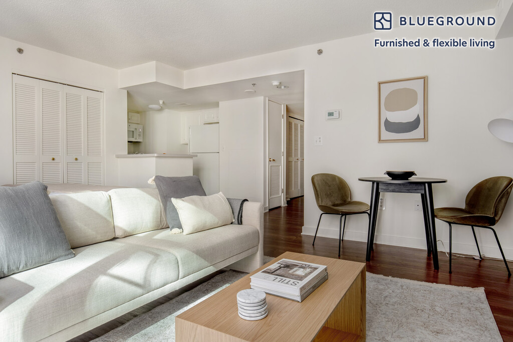 Discover the best of Washington, D.C., with this studio apartment in Penn Quarter. It’ll be easy to simply show up and start living in this fashionably furnished apartment with its fully equipped kitchen, stylish living room, and our dedicated, on-the-ground support. (ID #WDC577) The advertised rate of $1,720/month is the lowest available price, based on a 1 month(s) and 25 day(s) stay with a move-in date of November 24, 2025. If you’re looking for a 1-year stay, the rate is $2,500/month. Rates vary depending on the duration of stay, season, and other parameters. For exact pricing and additional pricing components, please visit our website and enter your desired move-in and move-out dates. The rate is applicable when billed upfront; it can be higher if billed in multiple payments. Brokers are welcome to reach out. Were you looking for an unfurnished lease? Try Blueground instead and upgrade from unfurnished to furnished living: - Furnished at rates comparable to unfurnished - No setup or furniture costs - save thousands - Move-in ready - save time, just bring your suitcase Designed with you in mind Thoughtfully designed with bespoke finishes, modern furnishings, and a fully equipped kitchen, you’ll enjoy that “I’m home” feeling with this Blueground apartment. Whether you’re lounging in your comfortable living room streaming the latest and greatest entertainment on the smart TV or premium wireless speaker, or getting some well-earned rest on the superior quality mattress with luxury linens, you’ll fall in love with everything this Penn Quarter apartment has to offer. This apartment also offers in-apartment laundry. Sleeping arrangements Queen Bed, 63in/160cm Amenities Building amenities unique to this studio apartment include an on-site: - BBQ Area - Doorman - Dryer - Elevator - Washing machine - Pets allowed Arrival and ongoing support The entire apartment is yours to enjoy! Throughout your stay, you’ll have access to our Client Experience team through the Blueground App. You can schedule additional cleanings, submit maintenance requests, and view our neighborhood recommendations with just a few taps. We’ll share all details upon confirmation of your stay. Ideally Located This furnished apartment is located in Penn Quarter, in the East End of Downtown Washington, D.C. A cool collection of museums, theaters, restaurants, and retail make the area one of the city’s most engaging districts. Throughout the year, Capital One Arena, home to the Washington Capitals, Wizards and Mystics hosts an all-star lineup of concerts. Penn Quarter is known for the popular farmers market, wine and art festivals it offers. For culture-lovers, the Newseum is the ideal place to visit during the weekends. This high-tech museum exploring journalism's past, present & future via interactive exhibits & films is one of Penn Quarter’s highlights since 2008. Other things to note Building amenities may have an extra cost. This Blueground apartment has flexible lease options, allowing you to book it for one month, a year, or more. Pets are welcome, though weight limits and breed restrictions apply and may incur fees. We take great pride in ensuring every photo displayed is shot in our own units with our actual furnishings. That said, we regularly refresh our decor and furniture arrangement, which may differ from what’s pictured.