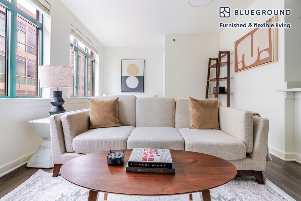 Show up and start living from day one in Washington, D.C. with this charming one bedroom Blueground apartment. You’ll love coming home to this thoughtfully furnished, beautifully designed, and fully equipped Penn Quarter home. (ID #WDC1231) The advertised rate of $2,550/month is the lowest available price, based on a 12 month(s) stay with a move-in date of May 1, 2026. Rates vary depending on the duration of stay, season, and other parameters. For exact pricing and additional pricing components, please visit our website and enter your desired move-in and move-out dates. The rate is applicable when billed upfront; it can be higher if billed in multiple payments. Brokers are welcome to reach out. Were you looking for an unfurnished lease? Try Blueground instead and upgrade from unfurnished to furnished living: - Furnished at rates comparable to unfurnished - No setup or furniture costs - save thousands - Move-in ready - save time, just bring your suitcase Designed with you in mind Thoughtfully designed with bespoke finishes, modern furnishings, and a fully equipped kitchen, you’ll enjoy that “I’m home” feeling with this Blueground apartment. Whether you’re lounging in your beautiful living room streaming the latest and greatest entertainment on the smart TV or premium wireless speaker, or getting some well-earned rest on the superior quality mattress with luxury linens, you’ll fall in love with everything this Penn Quarter apartment has to offer. This apartment also offers in-apartment laundry. Sleeping arrangements Queen Bed, 63in/160cm Amenities Building amenities unique to this one bedroom apartment include an on-site: - BBQ Area - Doorman - Dryer - Elevator - Washing machine - Pets allowed Arrival and ongoing support The entire apartment is yours to enjoy! Throughout your stay, you’ll have access to our Client Experience team through the Blueground App. You can schedule additional cleanings, submit maintenance requests, and view our neighborhood recommendations with just a few taps. We’ll share all details upon confirmation of your stay. Ideally Located This furnished apartment is located in Penn Quarter, in the East End of Downtown Washington, D.C. A cool collection of museums, theaters, restaurants, and retail make the area one of the city’s most engaging districts. Throughout the year, Capital One Arena, home to the Washington Capitals, Wizards and Mystics hosts an all-star lineup of concerts. Penn Quarter is known for the popular farmers market, wine and art festivals it offers. For culture-lovers, the Newseum is the ideal place to visit during the weekends. This high-tech museum exploring journalism's past, present & future via interactive exhibits & films is one of Penn Quarter’s highlights since 2008. Other things to note Building amenities may have an extra cost. This Blueground apartment has flexible lease options, allowing you to book it for one month, a year, or more. Pets are welcome, though weight limits and breed restrictions apply and may incur fees. We take great pride in ensuring every photo displayed is shot in our own units with our actual furnishings. That said, we regularly refresh our decor and furniture arrangement, which may differ from what’s pictured. [SI]