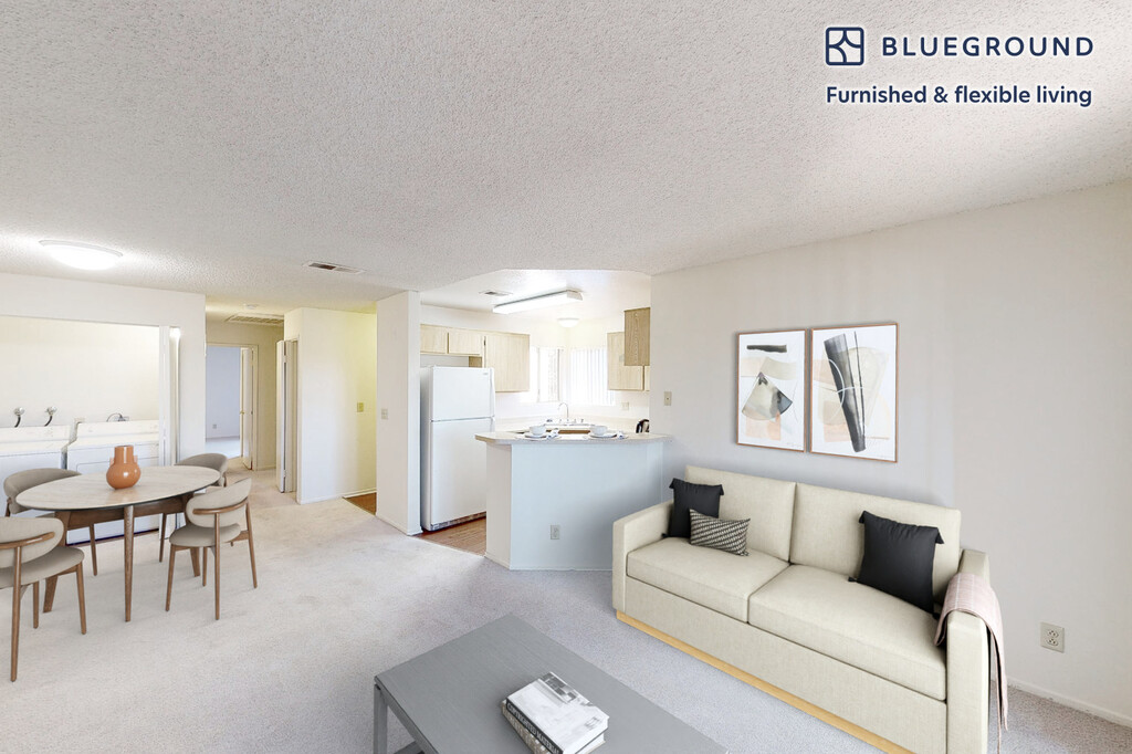 Staged photos of matching layout and similar décor Imagery shows same floorplan and building, and similar décor as we finish photographing this new unit. Be the first to rent! Show up and start living from day one in Pomona with this bright one bedroom Blueground apartment. You’ll love coming home to this thoughtfully furnished, beautifully designed, and fully equipped Phillips Ranch home. (ID #LAX10235A) The advertised rate of $2,880/month is the lowest available price, based on a 12 month(s) and 29 day(s) stay with a move-in date of November 23, 2025. Rates vary depending on the duration of stay, season, and other parameters. For exact pricing and additional pricing components, please visit our website and enter your desired move-in and move-out dates. The rate is applicable when billed upfront; it can be higher if billed in multiple payments. Brokers are welcome to reach out. Were you looking for an unfurnished lease? Try Blueground instead and upgrade from unfurnished to furnished living: - Furnished at rates comparable to unfurnished - No setup or furniture costs - save thousands - Move-in ready - save time, just bring your suitcase Designed with you in mind As with any Blueground apartment, you’ll find a thoughtfully designed space complete with beautiful furniture and a fully equipped kitchen in this one bedroom property. And, thanks to our superior quality mattresses, luxury linens, and towels, you can relax knowing you’ll always feel comfortably at home. When you’re ready for some fun, you can take in the Pomona vibes or bring the entertainment to you with the premium wireless speaker or smart TV. This apartment also offers in-apartment laundry. Amenities Building amenities unique to this one bedroom apartment include an on-site: - Dryer - Washing machine - Parking Arrival and ongoing support The entire apartment is yours to enjoy! Throughout your stay, you’ll have access to our Client Experience team through the Blueground App. You can schedule additional cleanings, submit maintenance requests, and view our neighborhood recommendations with just a few taps. We’ll share all details upon confirmation of your stay. Other things to note Photos show same floorplan and building, and similar decor as we finish photographing this new apartment. This Blueground apartment has flexible lease options, allowing you to book it for one month, a year, or more. Parking is offered based on availability and is subject to a fee. Please keep in mind that this is a walk up building. We take great pride in ensuring every photo displayed is shot in our own units with our actual furnishings. That said, we regularly refresh our decor and furniture arrangement, which may differ from what’s pictured.