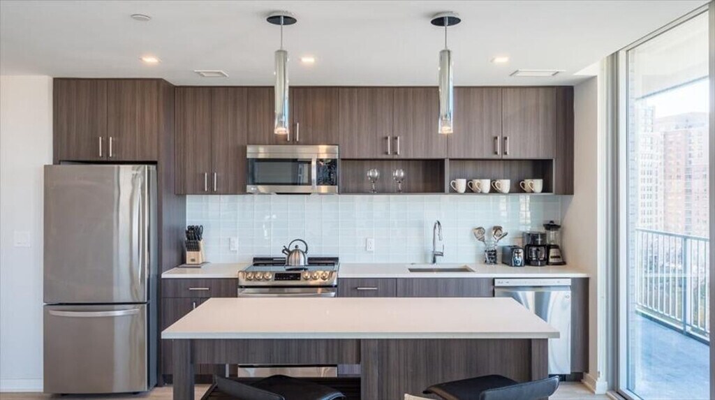 Feel at home in this modern high-rise apartment located near the Pentagon and several Metro stations. With spacious floor plans, swanky stainless steel appliances, and luxurious finishes, this apartment offers a perfect blend of comfort and style. Enjoy the convenience of being within walking distance to Pentagon City Metro Station, Whole Foods, and Fashion Centre Mall. Experience the best of the D.C. metro area in quiet, convenient Pentagon City. This apartment features at least one private bedroom with a comfortable bed, premium linens, and a large walk-in closet. The bathroom is equipped with beautiful chrome fixtures and plenty of counter space. The full kitchen boasts gleaming stainless steel appliances, including a full-size refrigerator and freezer, electric stove, oven, microwave, and dishwasher. The sleek cabinets are stocked with dishes, cookware, and utensils, making it easy to prepare meals. Dine in style at the dining table or relax in the living room with a flat-screen TV and floor-to-ceiling windows offering stunning city views. The building offers a range of high-end amenities, including an outdoor pool and sun deck, outdoor fire pits and BBQ grills, an elevated landscaped courtyard, a 24-hour fitness center with Precor equipment and a golf simulator, a game room with TVs, a pool table, and arcade games, a penthouse lounge with spectacular views, 24-hour package retrieval, a pet wash station, bike storage, and dry cleaning services for a fee. Located in the heart of Pentagon City, this apartment provides easy access to public transit and is surrounded by a plethora of convenient amenities. From your front door, you can walk to the Pentagon, Long Bridge Park, Fashion Centre Mall, and numerous corporate headquarters. The efficient public transit system makes it easy to explore the entire D.C. metro area. The building provides round-the-clock concierge service and a state-of-the-art fitness center. A laptop computer is not included. [SI]