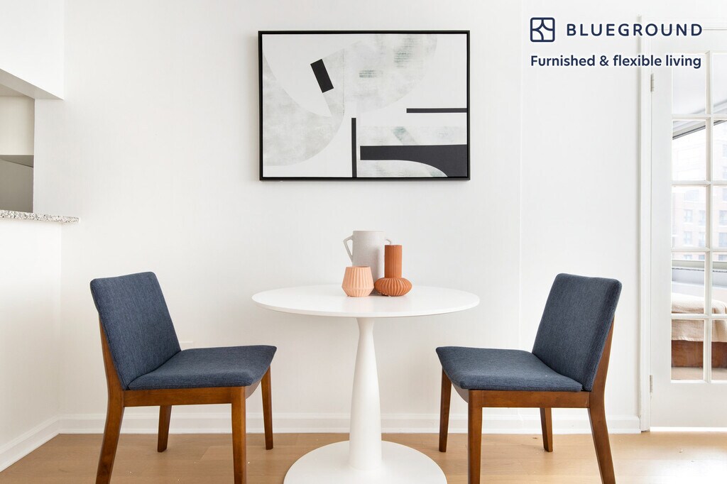 Show up and start living from day one in New York with this pretty studio Blueground apartment. You’ll love coming home to this thoughtfully furnished, beautifully designed, and fully equipped Battery Park City home. (ID #NYC2128) The advertised rate of $3,350/month is the lowest available price, based on a 1 month(s) and 2 day(s) stay with a move-in date of January 2, 2026. If you’re looking for a 1-year stay, the rate is $5,640/month. Rates vary depending on the duration of stay, season, and other parameters. For exact pricing and additional pricing components, please visit our website and enter your desired move-in and move-out dates. The rate is applicable when billed upfront; it can be higher if billed in multiple payments. Brokers are welcome to reach out. Were you looking for an unfurnished lease? Try Blueground instead and upgrade from unfurnished to furnished living: - Furnished at rates comparable to unfurnished - No setup or furniture costs - save thousands - Move-in ready - save time, just bring your suitcase Designed with you in mind As with any Blueground apartment, you’ll find a thoughtfully designed space complete with beautiful furniture and a fully equipped kitchen in this studio property. And, thanks to our superior quality mattresses, luxury linens, and towels, you can relax knowing you’ll always feel comfortably at home. When you’re ready for some fun, you can take in the New York vibes or bring the entertainment to you with the premium wireless speaker or smart TV. This apartment also offers in-floor laundry. Sleeping arrangements Queen Bed, 63in/160cm Amenities Building amenities unique to this studio apartment include an on-site: - BBQ Area - Doorman - Dryer of floor - Elevator - Washing machine on floor - Lounge - Pets allowed - Playroom Arrival and ongoing support The entire apartment is yours to enjoy! Throughout your stay, you’ll have access to our Client Experience team through the Blueground App. You can schedule additional cleanings, submit maintenance requests, and view our neighborhood recommendations with just a few taps. We’ll share all details upon confirmation of your stay. Other things to note Building amenities may have an extra cost. This Blueground apartment has flexible lease options, allowing you to book it for one month, a year, or more. Pets are welcome, though weight limits and breed restrictions apply and may incur fees. Brokes CYOF. We take great pride in ensuring every photo displayed is shot in our own units with our actual furnishings. That said, we regularly refresh our decor and furniture arrangement, which may differ from what’s pictured. [GO]