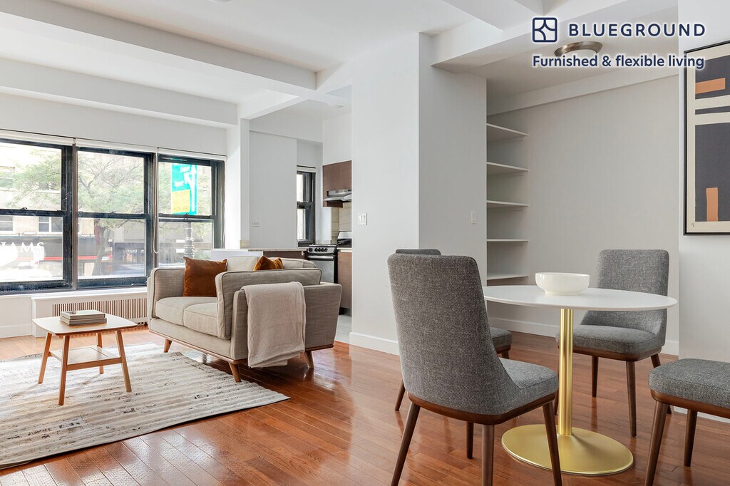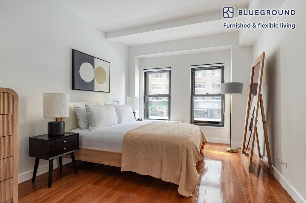 Feel at home wherever you choose to live with Blueground. You’ll love this sophisticated Sutton Place furnished one bedroom apartment with its modern decor, fully equipped kitchen, and cozy living room. Ideally located, you’re close to all the best that New York has to offer! (ID #NYC2106) The advertised rate of $5,570/month is the lowest available price, based on a 6 month(s) and 7 day(s) stay with a move-in date of September 1, 2026. If you’re looking for a 1-year stay, the rate is $6,480/month. Rates vary depending on the duration of stay, season, and other parameters. For exact pricing and additional pricing components, please visit our website and enter your desired move-in and move-out dates. The rate is applicable when billed upfront; it can be higher if billed in multiple payments. Brokers are welcome to reach out. Were you looking for an unfurnished lease? Try Blueground instead and upgrade from unfurnished to furnished living: - Furnished at rates comparable to unfurnished - No setup or furniture costs - save thousands - Move-in ready - save time, just bring your suitcase Designed with you in mind As with any Blueground apartment, you’ll find a thoughtfully designed space complete with beautiful furniture and a fully equipped kitchen in this one bedroom property. And, thanks to our superior quality mattresses, fully stocked linens, and towels, you can relax knowing you’ll always feel comfortably at home. When you’re ready for some fun, you can take in the New York vibes or bring the entertainment to you with the premium wireless speaker or smart TV. Sleeping arrangements Queen Bed, 63in/160cm Amenities Building amenities unique to this one bedroom apartment include an on-site: - Doorman - Dryer in building - Elevator - Washing machine in building - Lounge - Pets allowed - Playroom Arrival and ongoing support The entire apartment is yours to enjoy! Throughout your stay, you’ll have access to our Client Experience team through the Blueground App. You can schedule additional cleanings, submit maintenance requests, and view our neighborhood recommendations with just a few taps. We’ll share all details upon confirmation of your stay. Ideally Located This furnished apartment is located in the very upscale neighborhood of Sutton Place. It covers a small area stretching from 53rd Street to 59th Street between the East River to Second Avenue. Featured in countless novels and films, there is a good deal of prestige that comes from having a Sutton Place address. There are two parks overlooking the river, making it a beautiful spot for a stroll. As far as shopping and dining are considered, the neighborhood is within walking distance of many upscale destinations. Head to Fifth Avenue or Lexington for a sophisticated evening out. The intriguing architecture and lack of traffic make Sutton Place an appealing area to stay in. The M15 bus travels up First Avenue and down Second. Other things to note Building amenities may have an extra cost. This Blueground apartment has flexible lease options, allowing you to book it for one month, a year, or more. Pets are welcome, though weight limits and breed restrictions apply and may incur fees. Brokes CYOF. We take great pride in ensuring every photo displayed is shot in our own units with our actual furnishings. That said, we regularly refresh our decor and furniture arrangement, which may differ from what’s pictured. [SI]