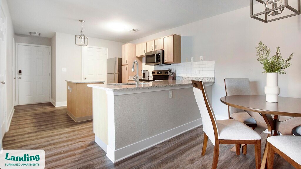 Landing offers flexible lease terms from weeks to months. Please always visit our website or contact us for the latest pricing & availability. Stay longer, save more: 6-Month Minimum base rent: starts at $1802/mo 12-Month Minimum base rent: starts at $1781/mo Landing offers flexible leases across a network of over 35,000 fully-furnished apartments throughout 375+ cities so you can rent on your terms, practically anywhere, and avoid the hassle of paying deposits or application fees. Visit to learn about all the benefits of a Landing membership, see our competitive up-to-date pricing, explore available apartments, take virtual tours, and make reservations online without jumping through traditional rental hoops. Landing's apartments at The Legends on the Park are designed for comfortable, easy living, with the ability to stay as long as you like. Experience living with Landing Every apartment is outfitted with all the modern essentials including: custom-designed furnishings, a fully-equipped kitchen with deluxe stainless steel appliances, a gourmet coffee maker, premium linens, Smart TVs, and incredibly fast, reliable internet for working from home. When you live with Landing, you'll enjoy a hassle-free experience with the added benefit of 24/7 access to our dedicated member experience team. Some of the nitty-gritty: a background check and proof of income are required; we're completely smoke-free; bundled utility packages and pricing vary based on length of stay; pet-friendly options available; listed price reflects a 12-month minimum stay.