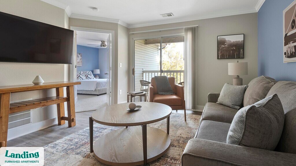 Landing offers flexible lease terms from weeks to months. Please always visit our website or contact us for the latest pricing & availability. Stay longer, save more: 6-Month Minimum base rent: starts at $1635/mo 12-Month Minimum base rent: starts at $1781/mo Landing offers flexible leases across a network of over 35,000 fully-furnished apartments throughout 375+ cities so you can rent on your terms, practically anywhere, and avoid the hassle of paying deposits or application fees. Visit to learn about all the benefits of a Landing membership, see our competitive up-to-date pricing, explore available apartments, take virtual tours, and make reservations online without jumping through traditional rental hoops. Landing's apartments at The Legends on the Park are designed for comfortable, easy living, with the ability to stay as long as you like. Experience living with Landing Every apartment is outfitted with all the modern essentials including: custom-designed furnishings, a fully-equipped kitchen with deluxe stainless steel appliances, a gourmet coffee maker, premium linens, Smart TVs, and incredibly fast, reliable internet for working from home. When you live with Landing, you'll enjoy a hassle-free experience with the added benefit of 24/7 access to our dedicated member experience team. Some of the nitty-gritty: a background check and proof of income are required; we're completely smoke-free; bundled utility packages and pricing vary based on length of stay; pet-friendly options available; listed price reflects a 12-month minimum stay.
