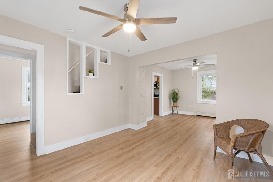 Available Soon! Welcome to this beautifully updated 4-bedroom, 2-bath Colonial, perfectly situated on a quiet corner lot in Middlesex, New Jersey. From the charming covered rocking chair porch to the thoughtfully designed interior, this home offers a seamless blend of comfort, character, and modern updates. Step inside to discover new flooring and fresh paint throughout, creating a bright and inviting atmosphere. The spacious kitchen has been tastefully renovated with custom cabinetry and abundant counter space, flowing effortlessly into the combined dining and living room ideal for entertaining or everyday gatherings. A versatile first-floor bedroom provides flexibility, whether as a private home office, guest retreat, or playroom. Upstairs, three additional bedrooms, including a generous primary, ensure space for everyone. Both bathrooms have been beautifully updated with stylish finishes, while ceiling fans add to the home's everyday comfort. Outdoors, the peaceful corner lot offers room to relax, garden, or entertain. The property also features a large shed with new flooring, offering excellent storage and the possibility of conversion into a garage with the right contractor. This move-in-ready Colonial is a perfect balance of timeless charm and modern convenience exceptional opportunity to call Middlesex home.